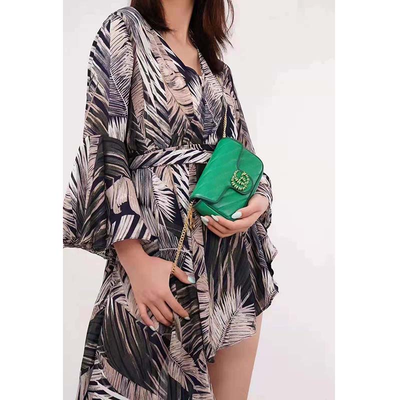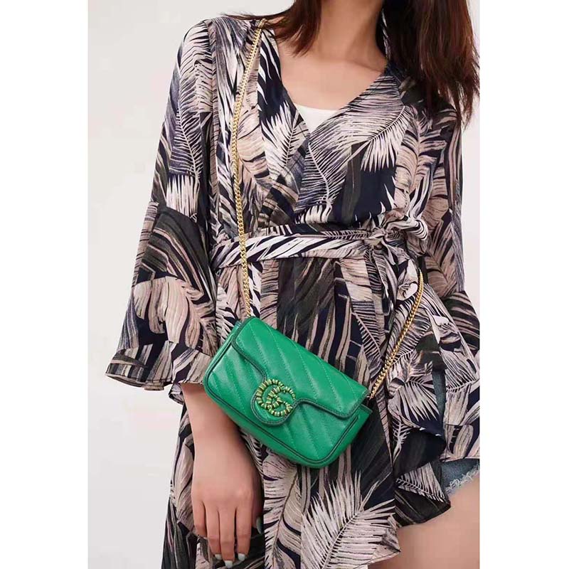 The GG Marmont super mini bag is introduced in matelassé leather in shades of green.