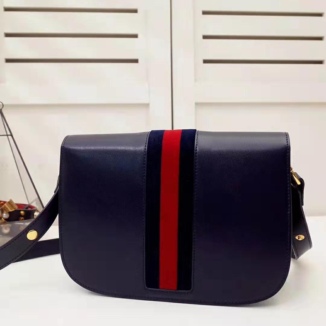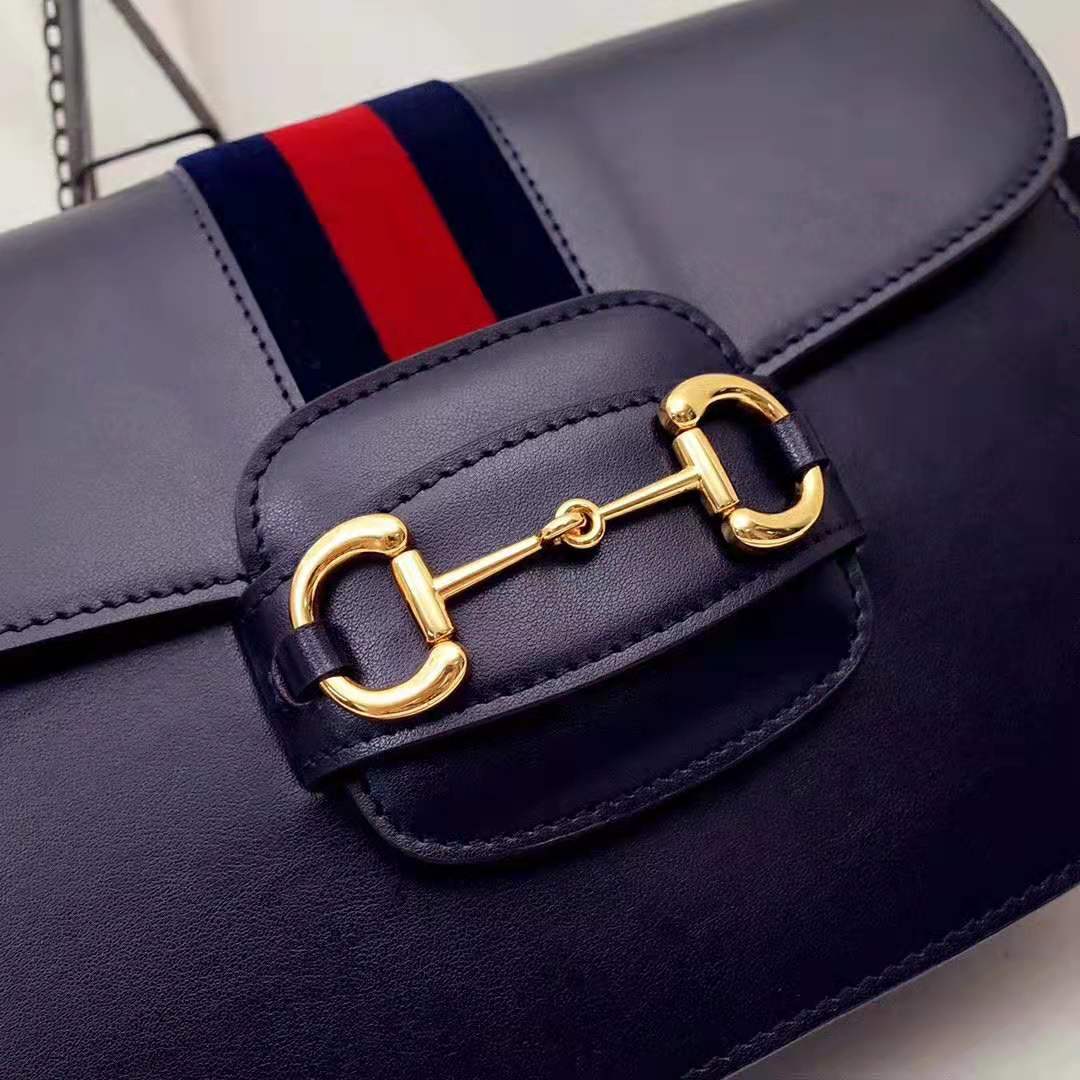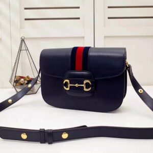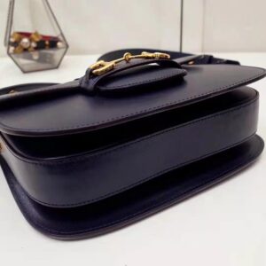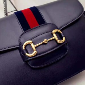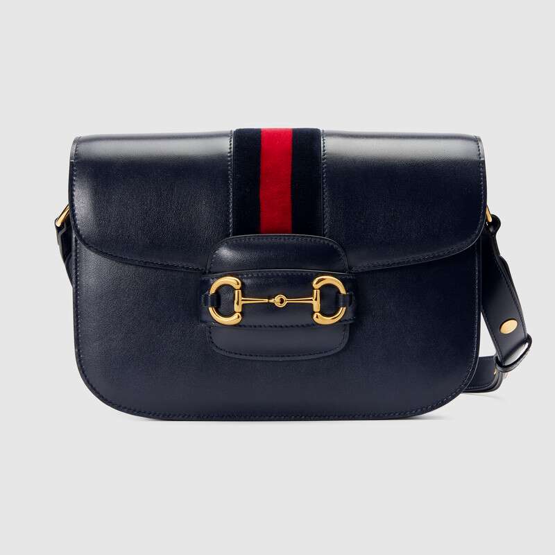 Part of Gucci’s genetic code, the double ring and bar design has been established as one of the most distinctive elements among the House symbols borrowed from the equestrian world. Presented on a small flap shoulder bag, the hardware is paired with the House Web stripe on blue leather and completed with a special mechanism that adjusts the length of the shoulder strap so it can be carried on one shoulder or cross body.