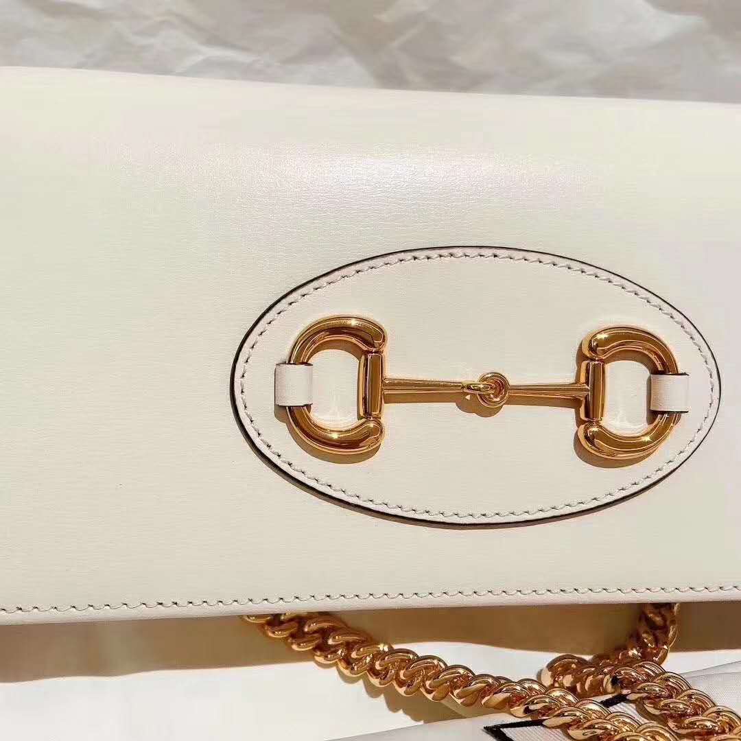 Gucci GG Women Gucci 1955 Horsebit Wallet with Chain-White