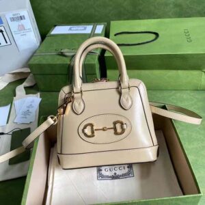 A miniature version of the Gucci Horsebit 1955 top handle bag is introduced for Ouverture in beige leather.