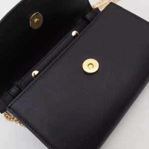 Detachable Marina chain shoulder strap with 51cm drop secures with a button closure at the interior flap