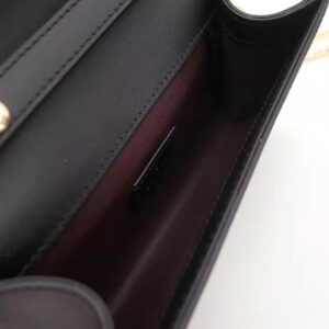 The bag can be carried cross body, used as a clutch when the chain is removed and worn as a top handle when the leather handle is extended.