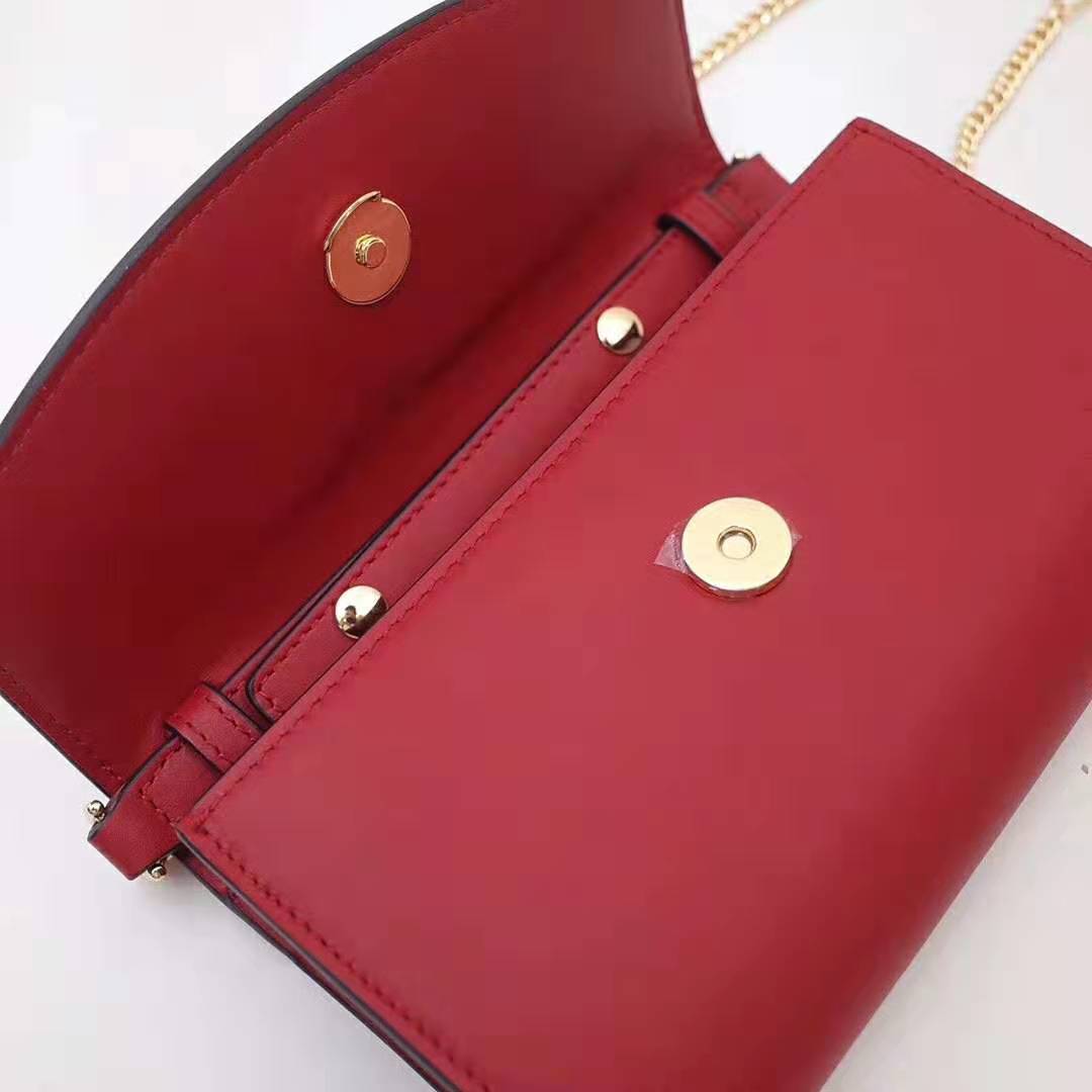 The hardware is presented in a modern mix of silver and gold tones on a smooth leather mini shoulder bag.