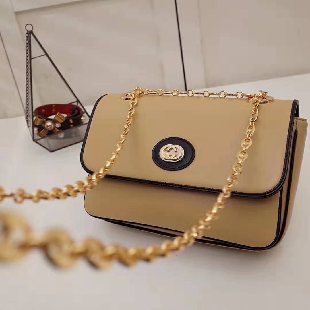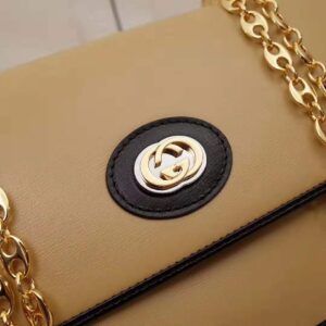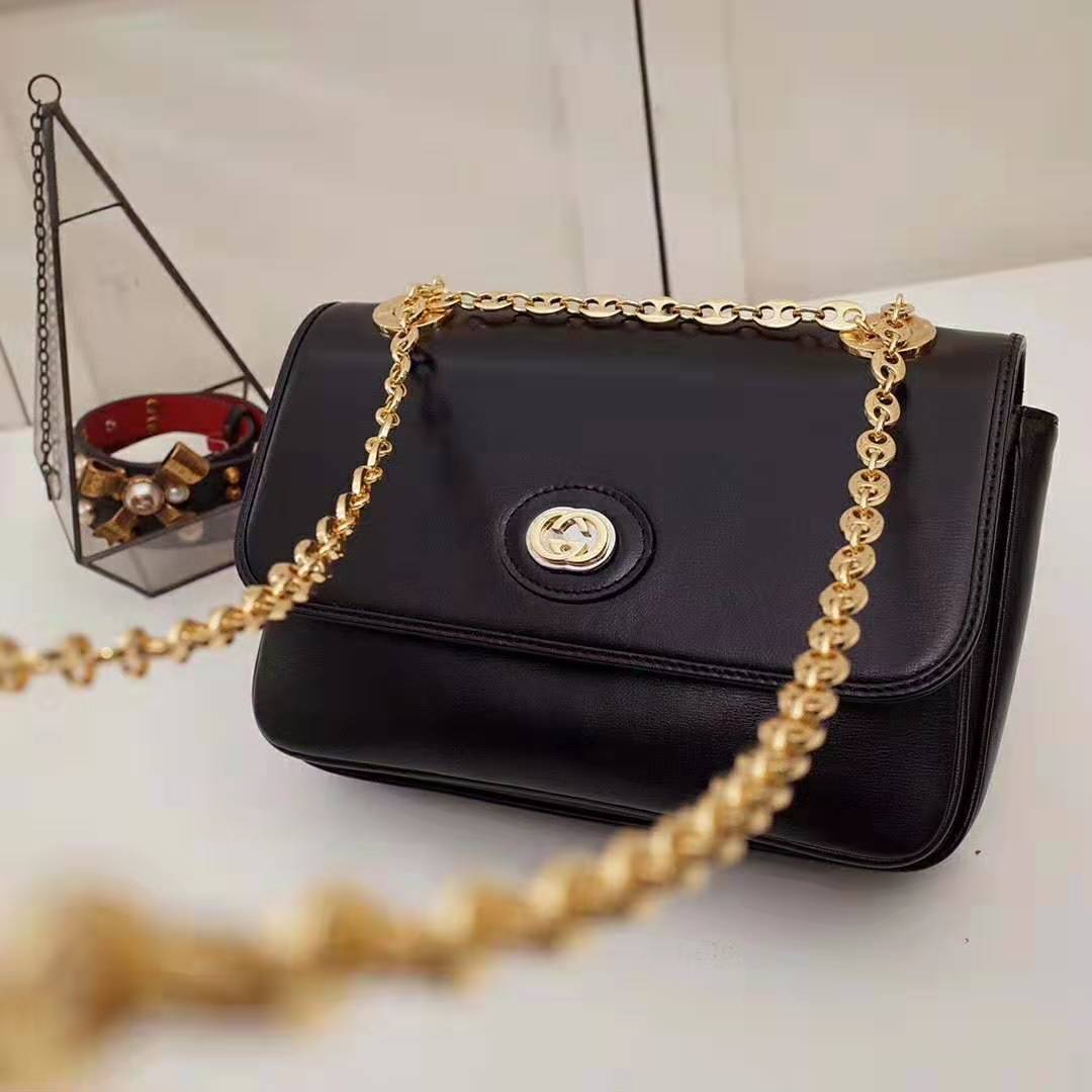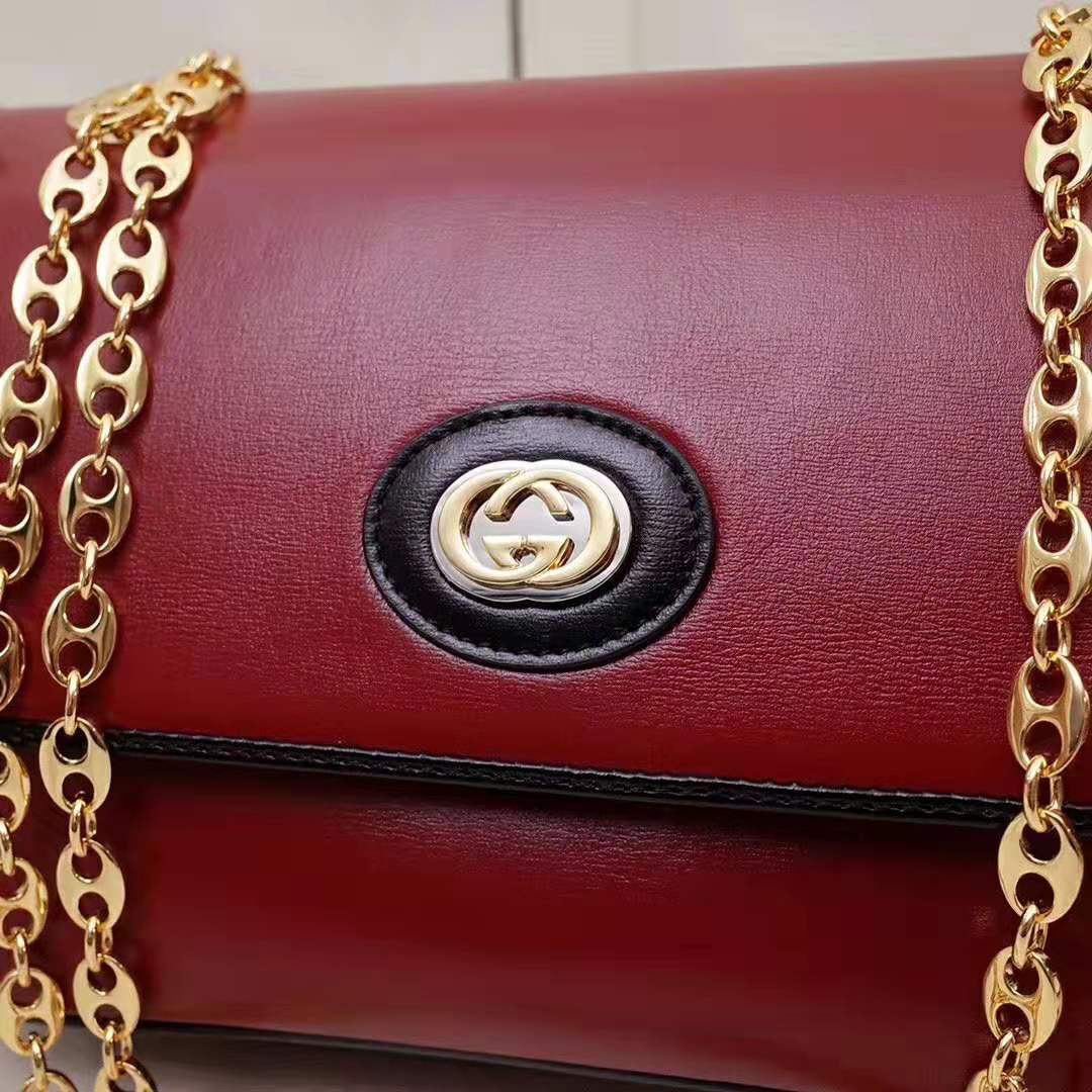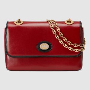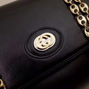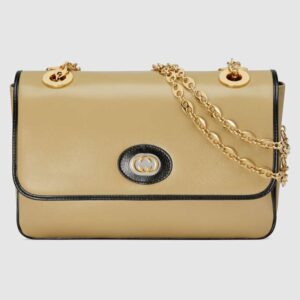 The compact shape is finished with a gold-toned Interlocking G set on a silver-toned plaque—a detail that defines the line.