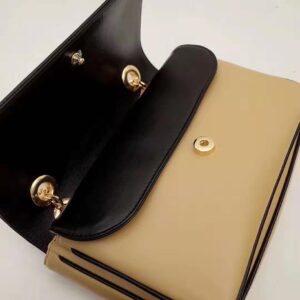 Sliding Marina chain strap can be worn as a shoulder strap with 18.5″ drop, as a top handle with 10.6″ drop
