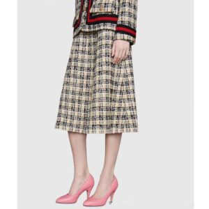 A miniature version of Guccio Gucci’s monogram appears as a hardware detail at the heel, adding a subtle logo touch.