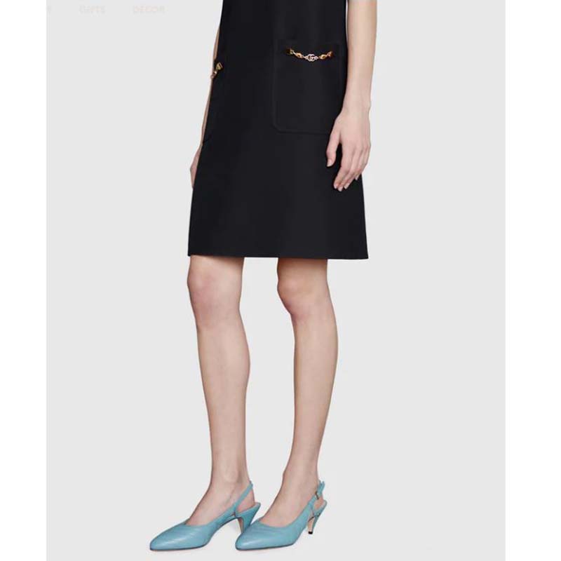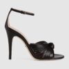 A miniature version of Guccio Gucci’s monogram appears as a hardware detail at the heel, adding a subtle logo touch.