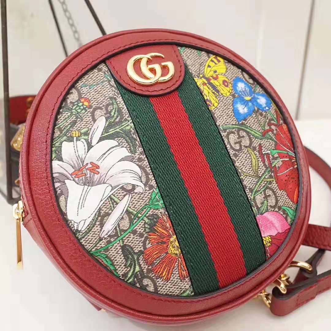 Beige/ebony GG Supreme canvas with Flora print, a material with low environmental impact, with red leather trim
