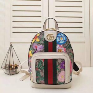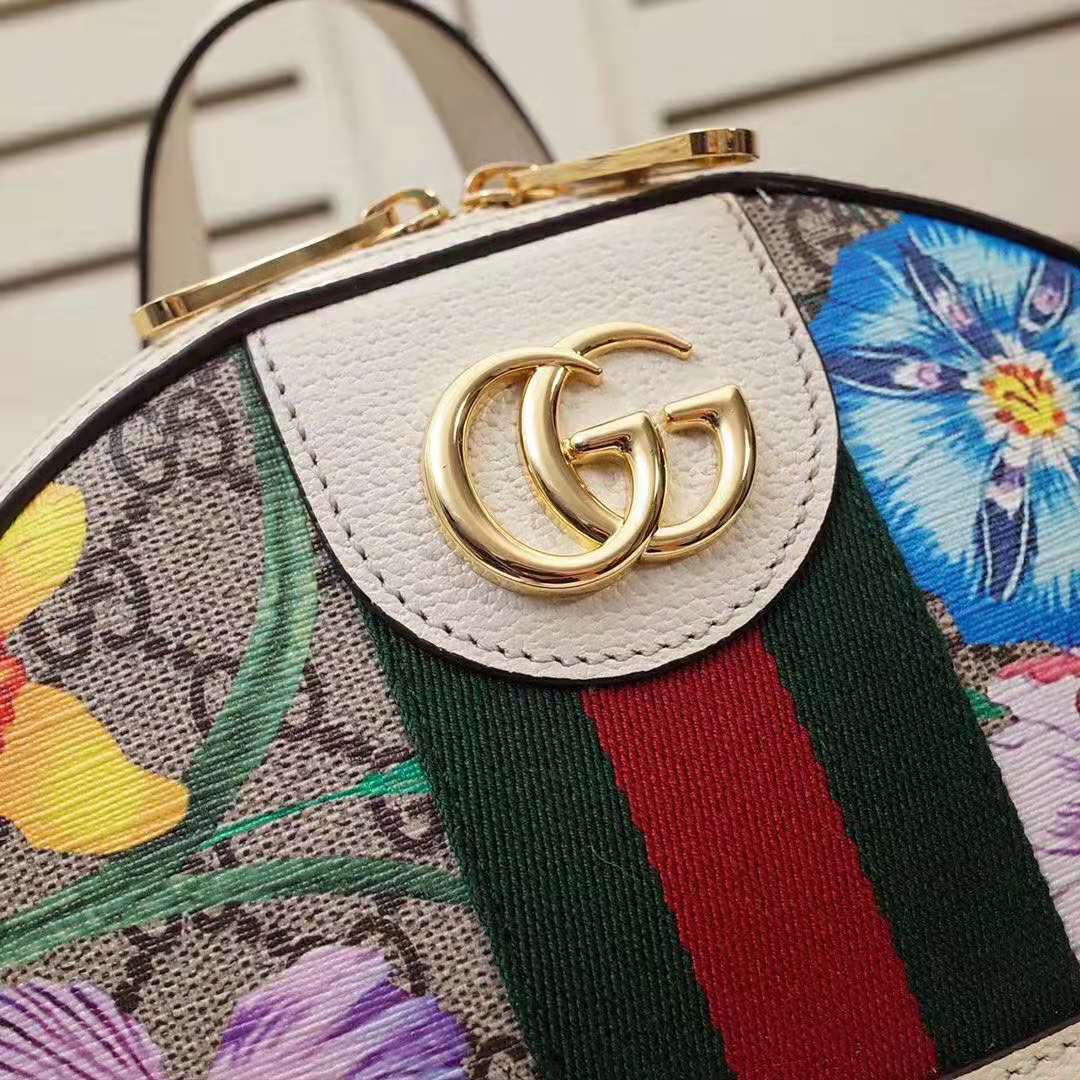 Beige/ebony GG Supreme canvas with Flora print, a material with low environmental impact, with white leather trim