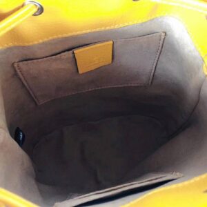 The historic Flora motif, first presented by Vittorio Accornero more than 50 years ago, is layered over the House monogram and trimmed with bright yellow leather for a modern take on the two archival patterns.
