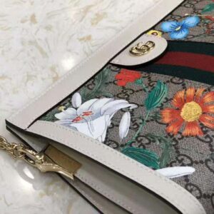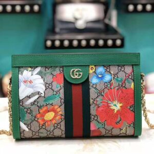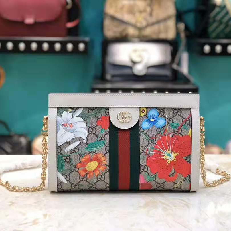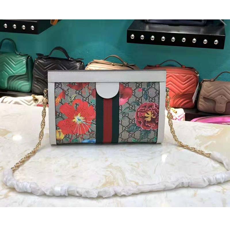A special collection combines two of the House’s most distinctive designs into an unexpected and contemporary fabric, animating classic silhouettes like the Ophidia chain strap shoulder bag. The historic Flora motif, first presented by Vittorio Accornero more than 50 years ago, is layered over the House monogram and trimmed with white leather for a modern take on the two archival patterns.