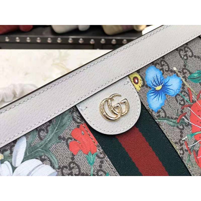 Beige/ebony GG Supreme canvas with Flora print, a material with low environmental impact, with white leather trim