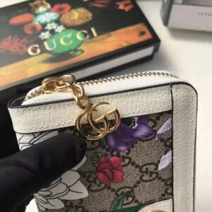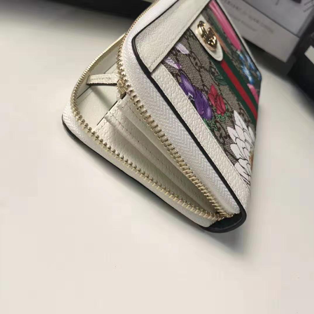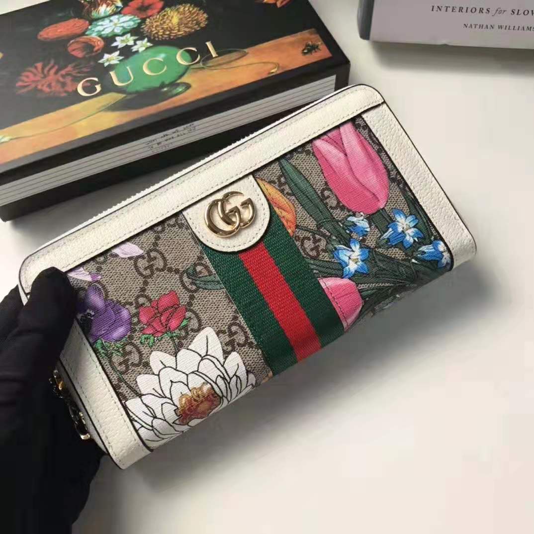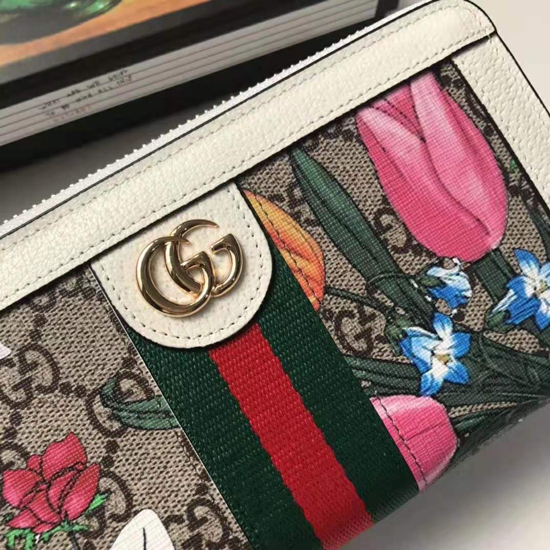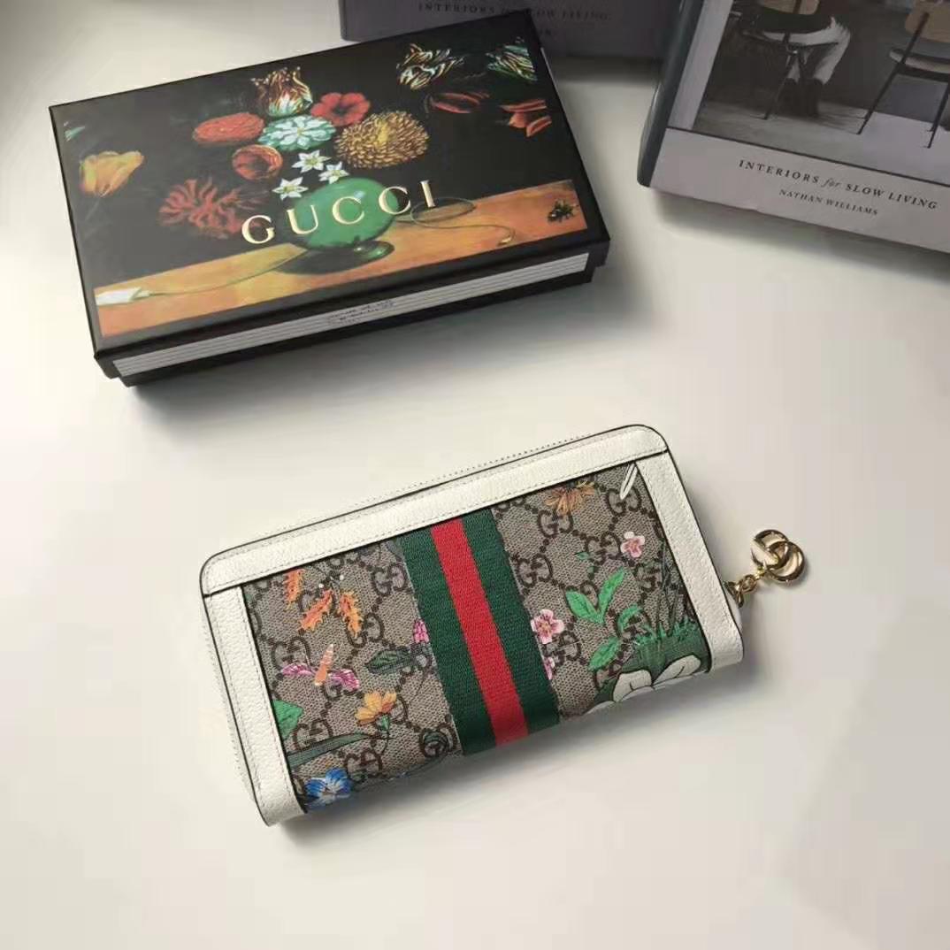 Gucci GG Women Ophidia GG Flora Zip Around Wallet in Beige/Ebony GG Supreme Canvas