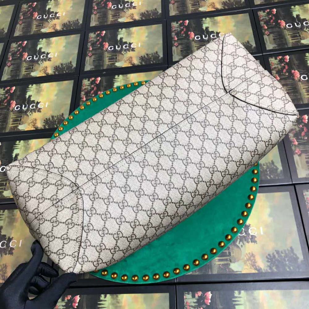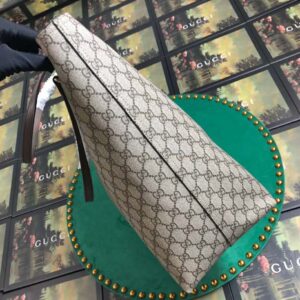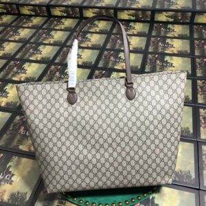 The double handled tote is crafted from supple soft GG Supreme, trimmed with textured leather.