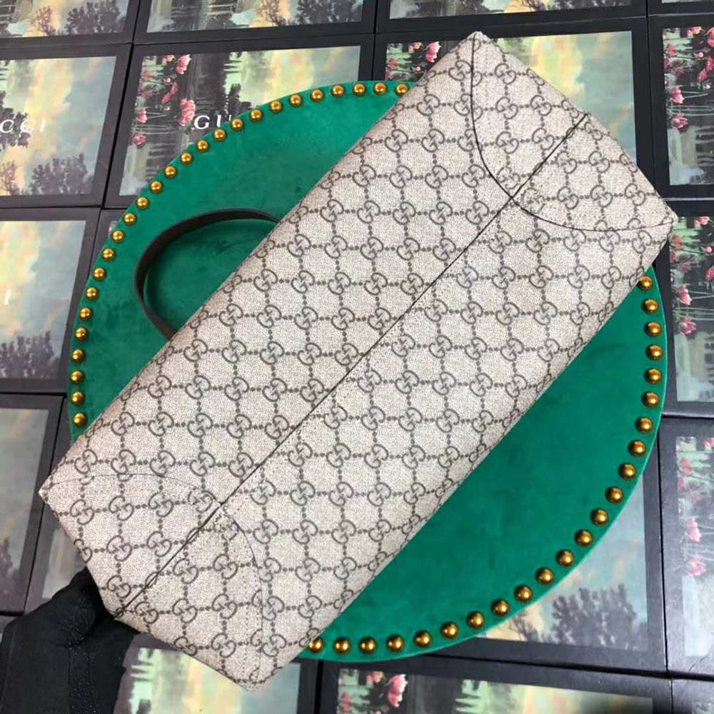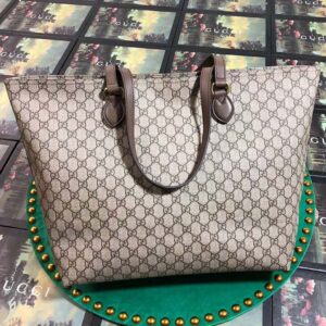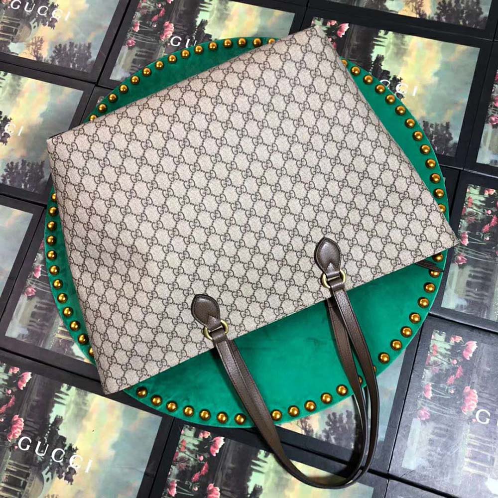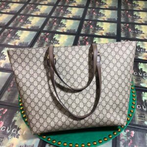 The double handled tote is crafted from supple soft GG Supreme, trimmed with textured leather.