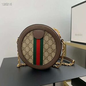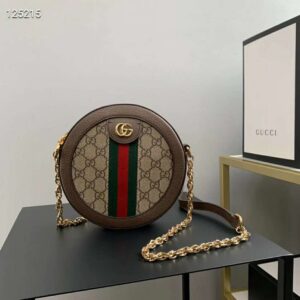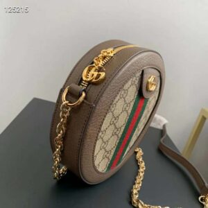 The world of Ophidia evolves with the introduction of a round mini bag with a chain shoulder strap.