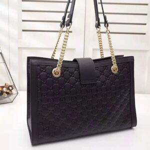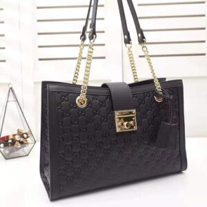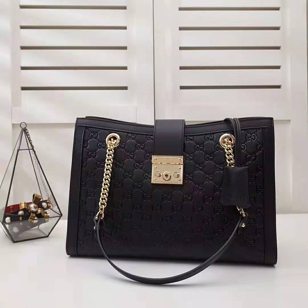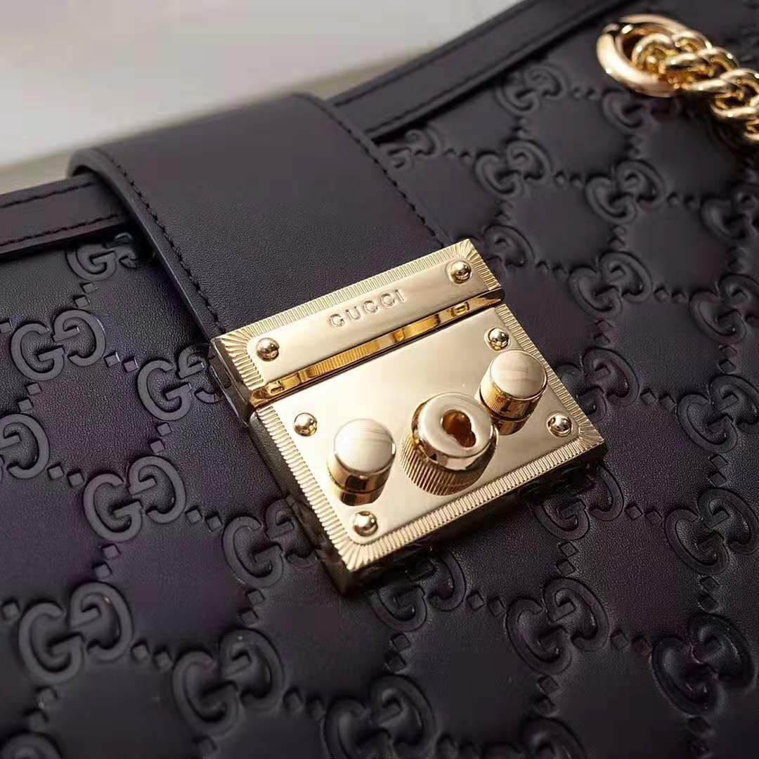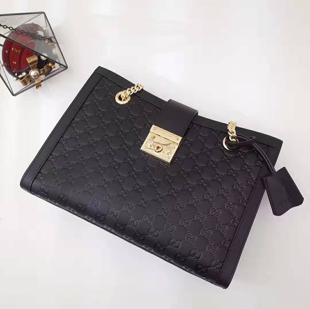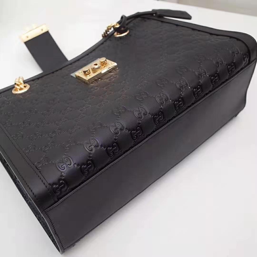 Gucci GG Women Padlock GG Medium Shoulder Bag in GG Supreme Canvas with Leather So Black
