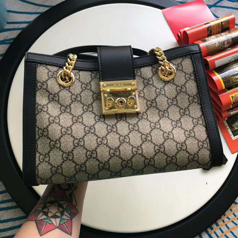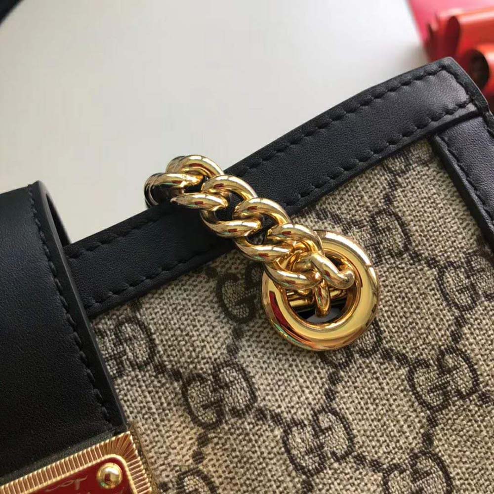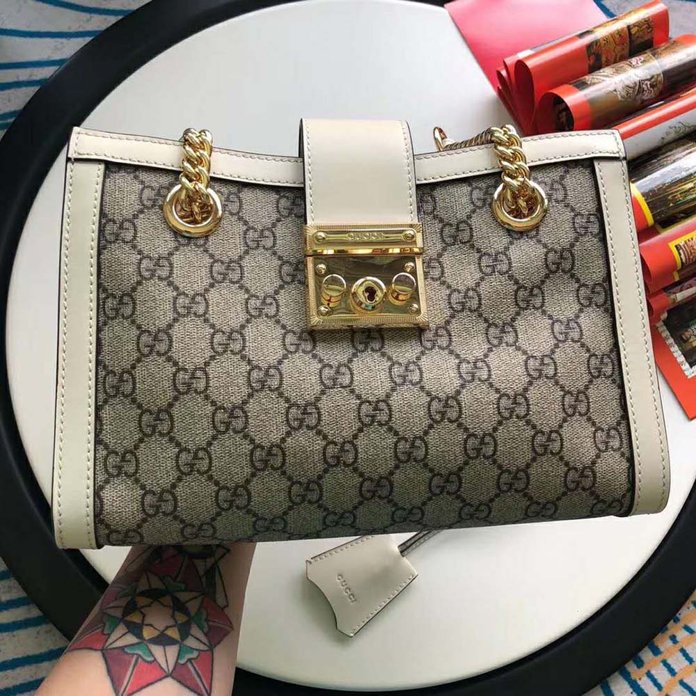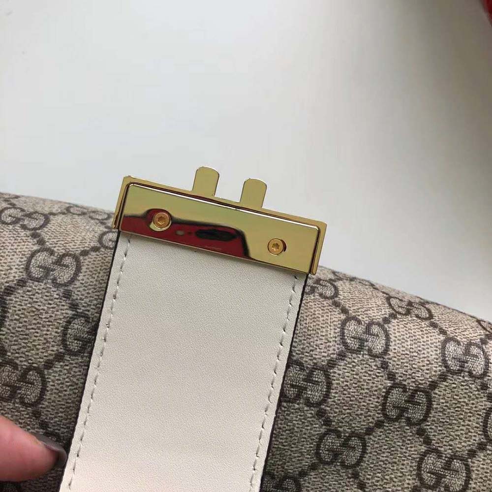 A structured shoulder bag in GG Supreme canvas with a strap that secures with a key lock closure pulled straight from the archives.