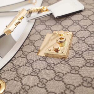 A structured shoulder bag in GG Supreme canvas with a strap that secures with a key lock closure pulled straight from the archives.