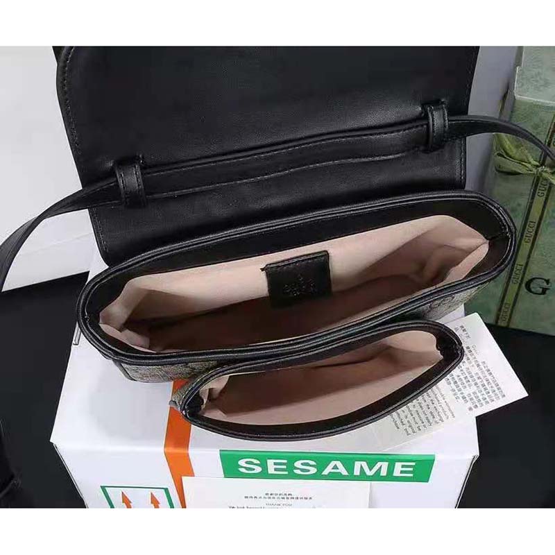 Here, a petite version of the Padlock is introduced in GG Supreme canvas with a black leather top.