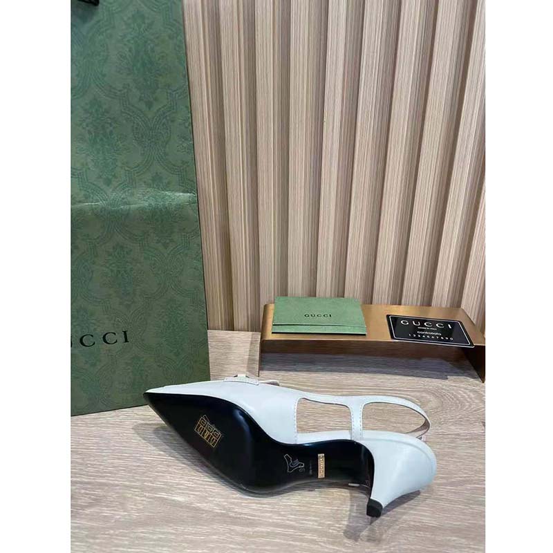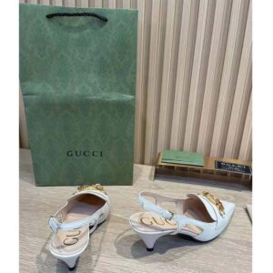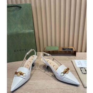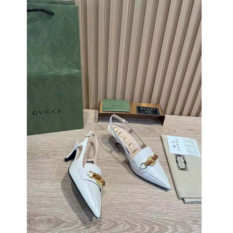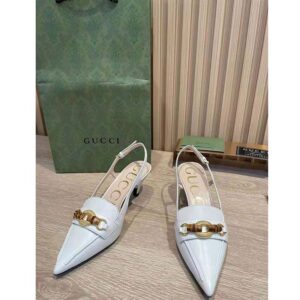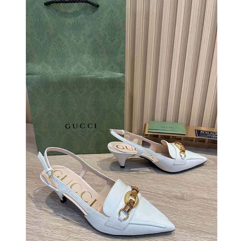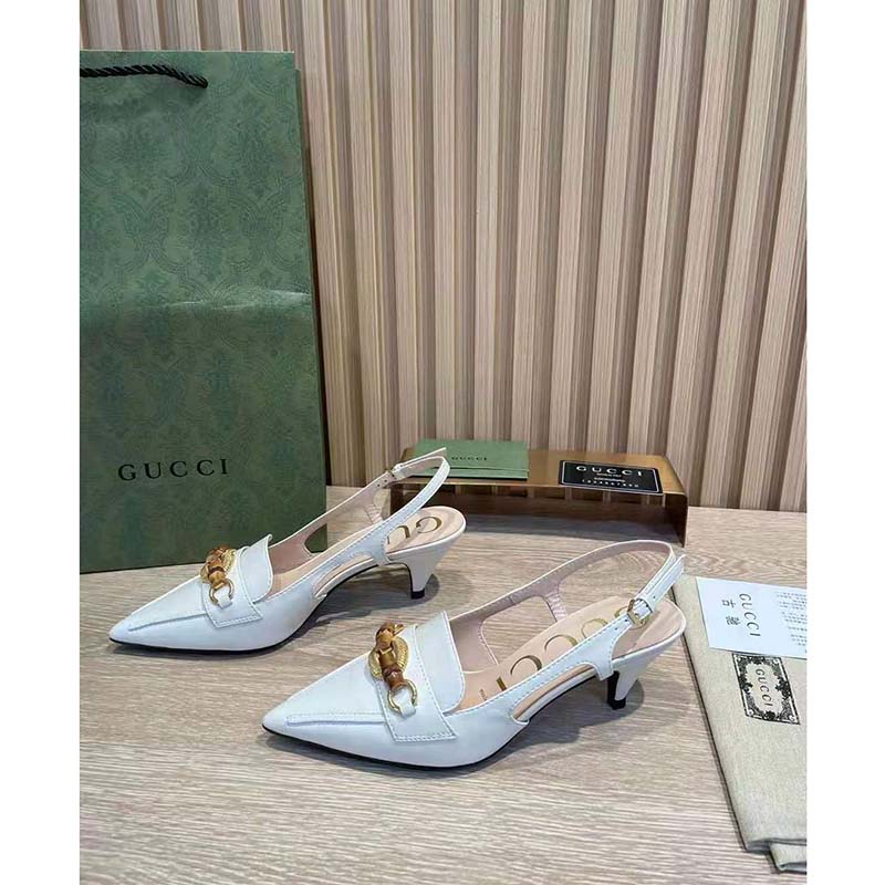 Gucci GG Women Pump with Bamboo Horsebit White Leather