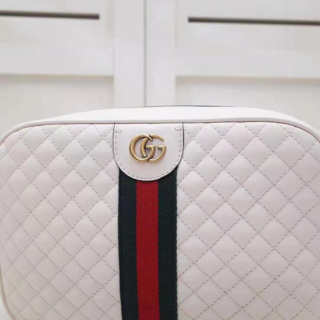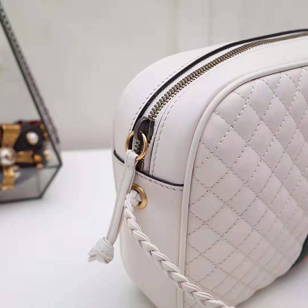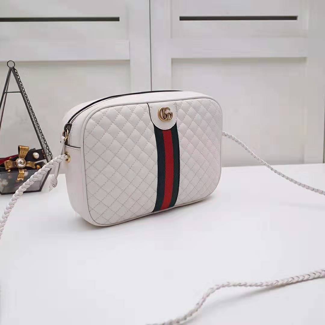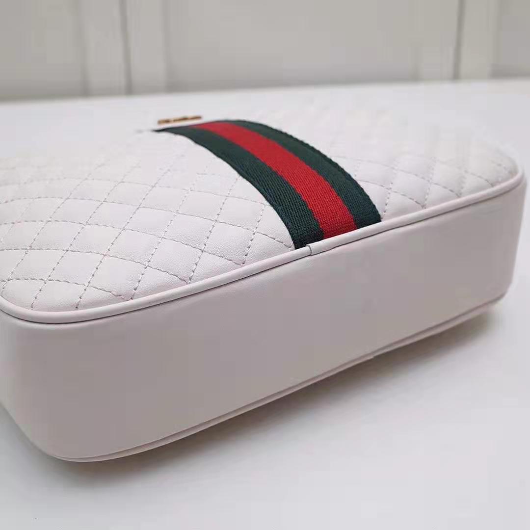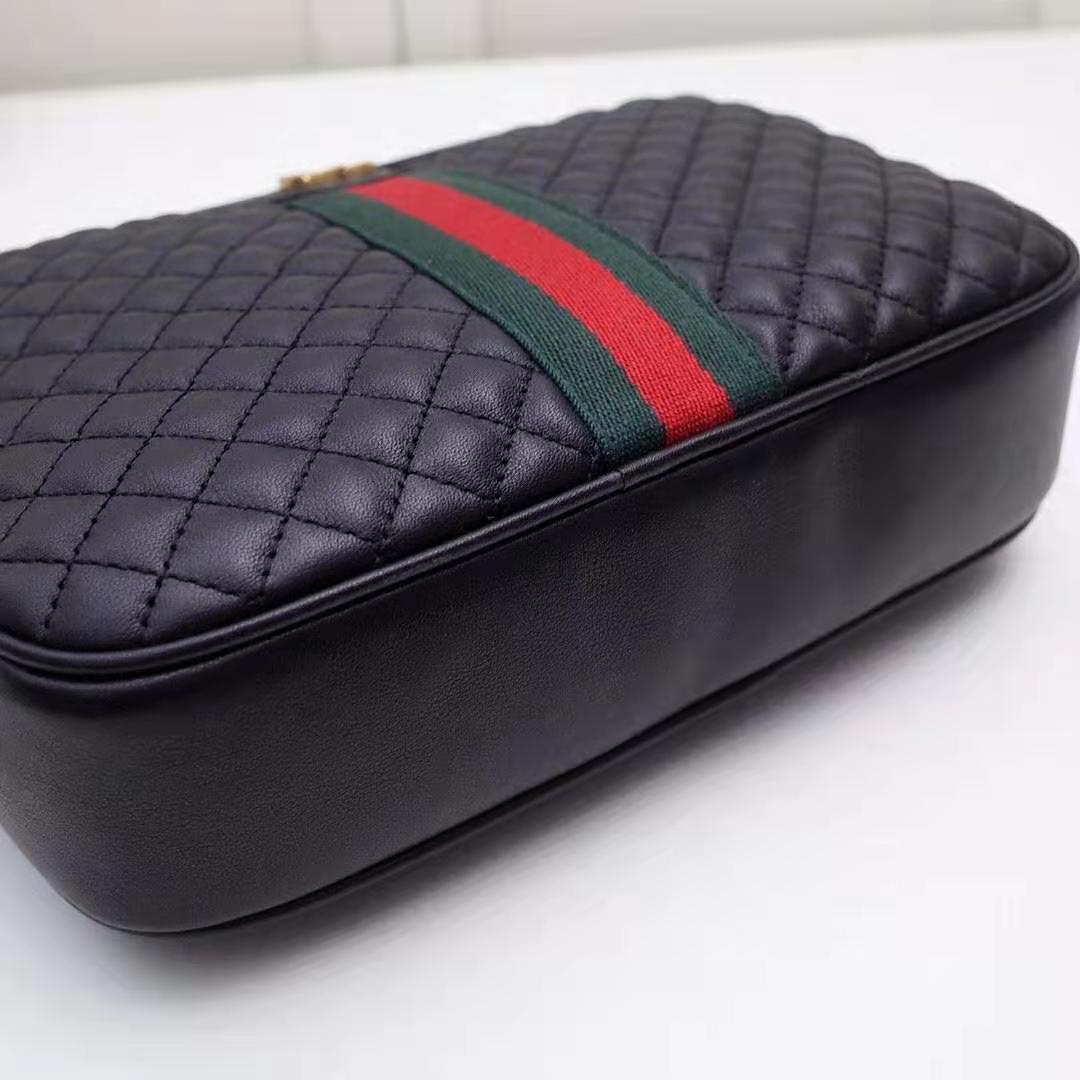 Gucci GG Women Quilted Leather Small Shoulder Bag with Green and Red Web