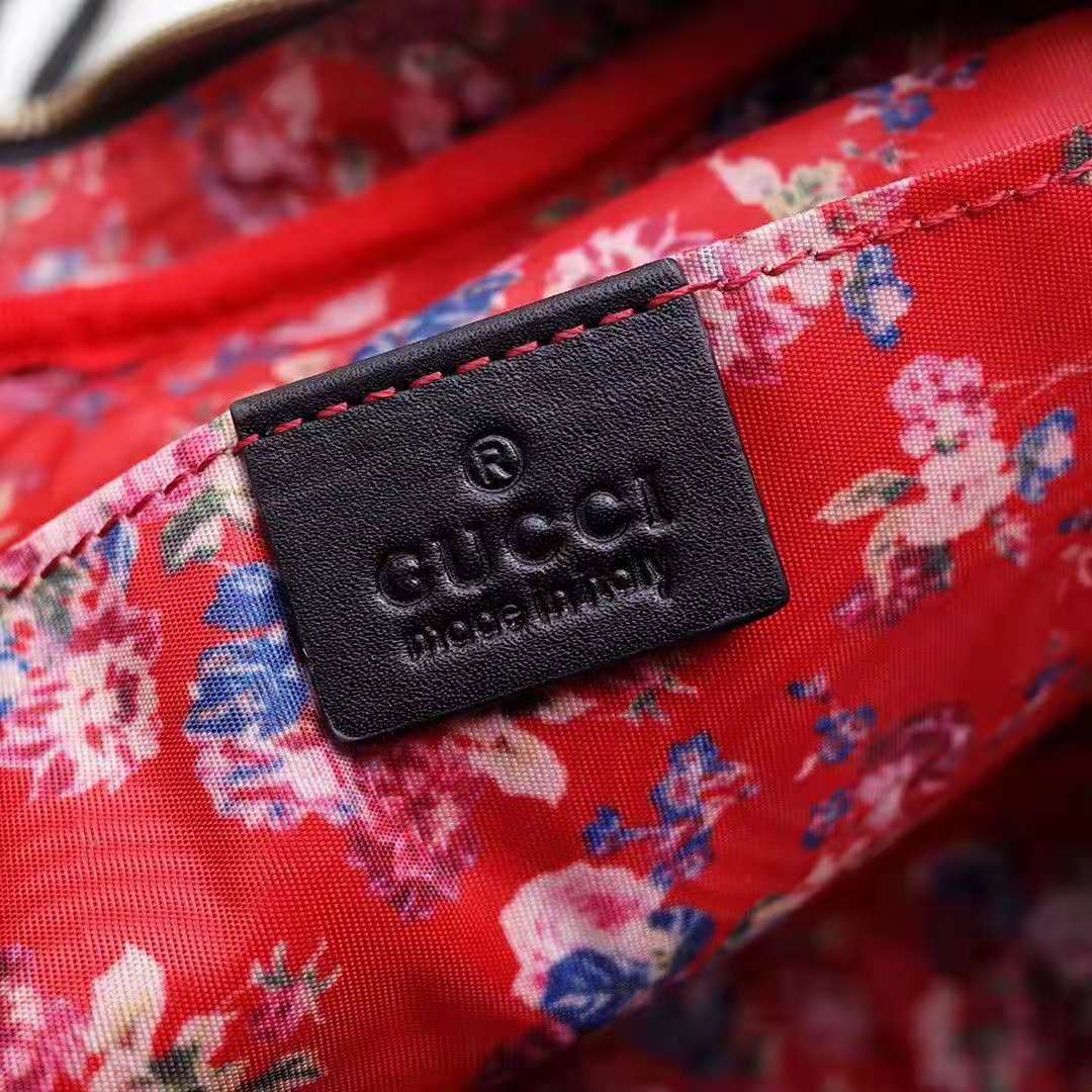 The shiny leather is contrasted with the traditional green and red Web stripe and Double G hardware.