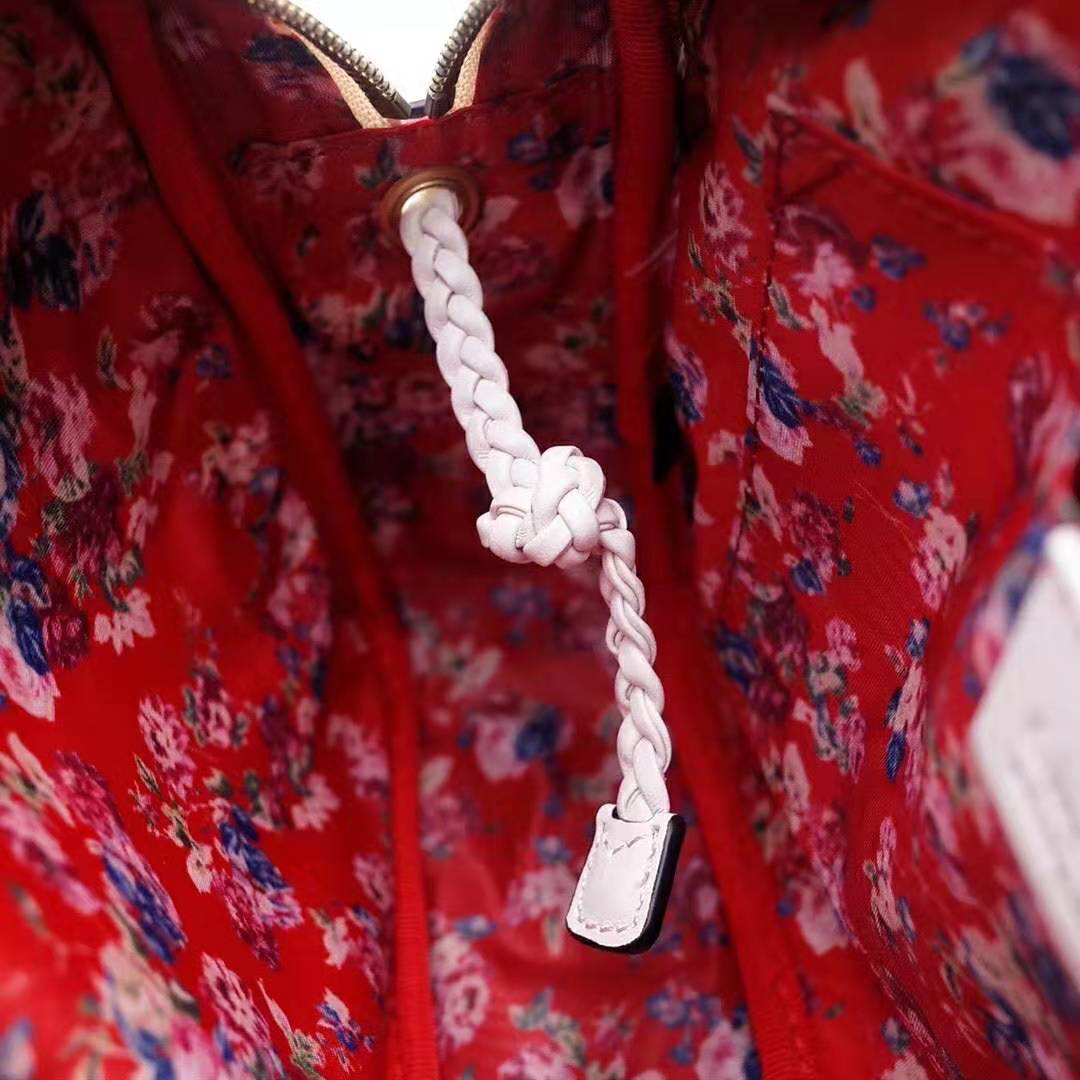 Off-white quilted leather with green and red Web