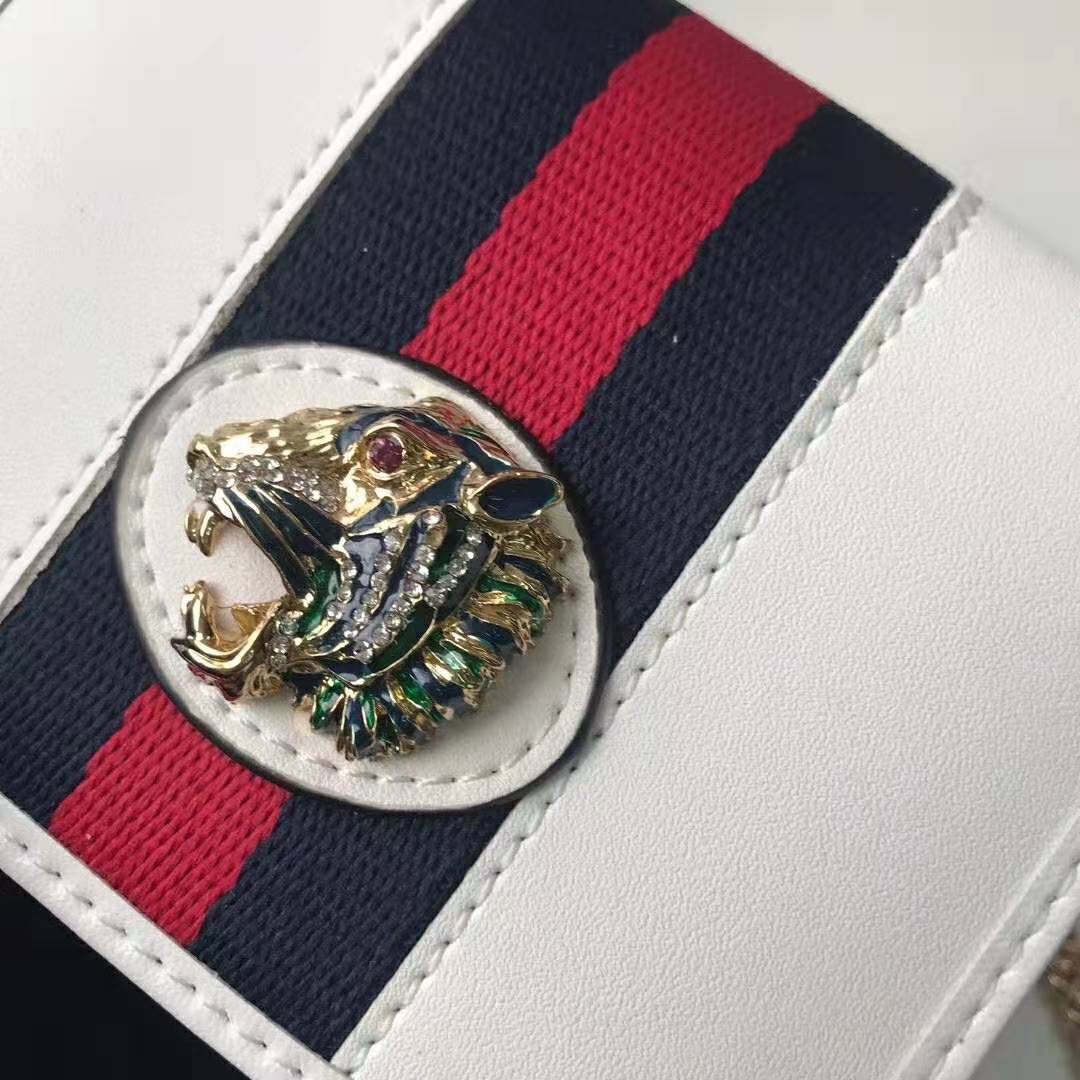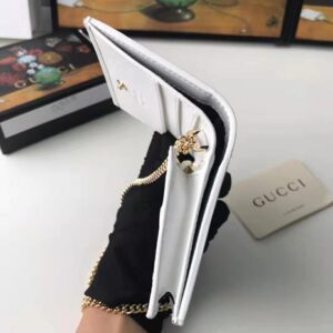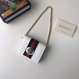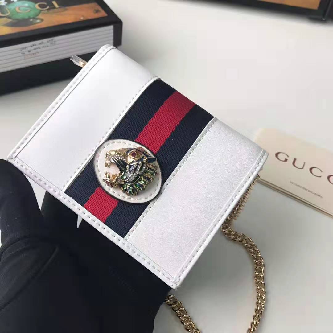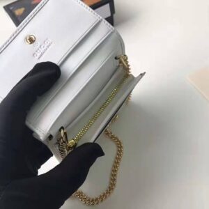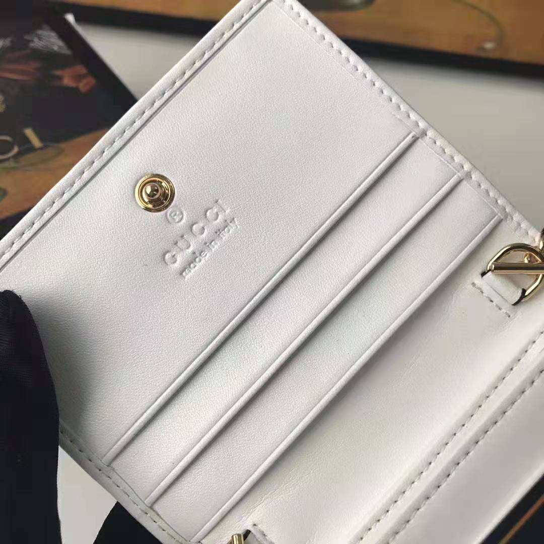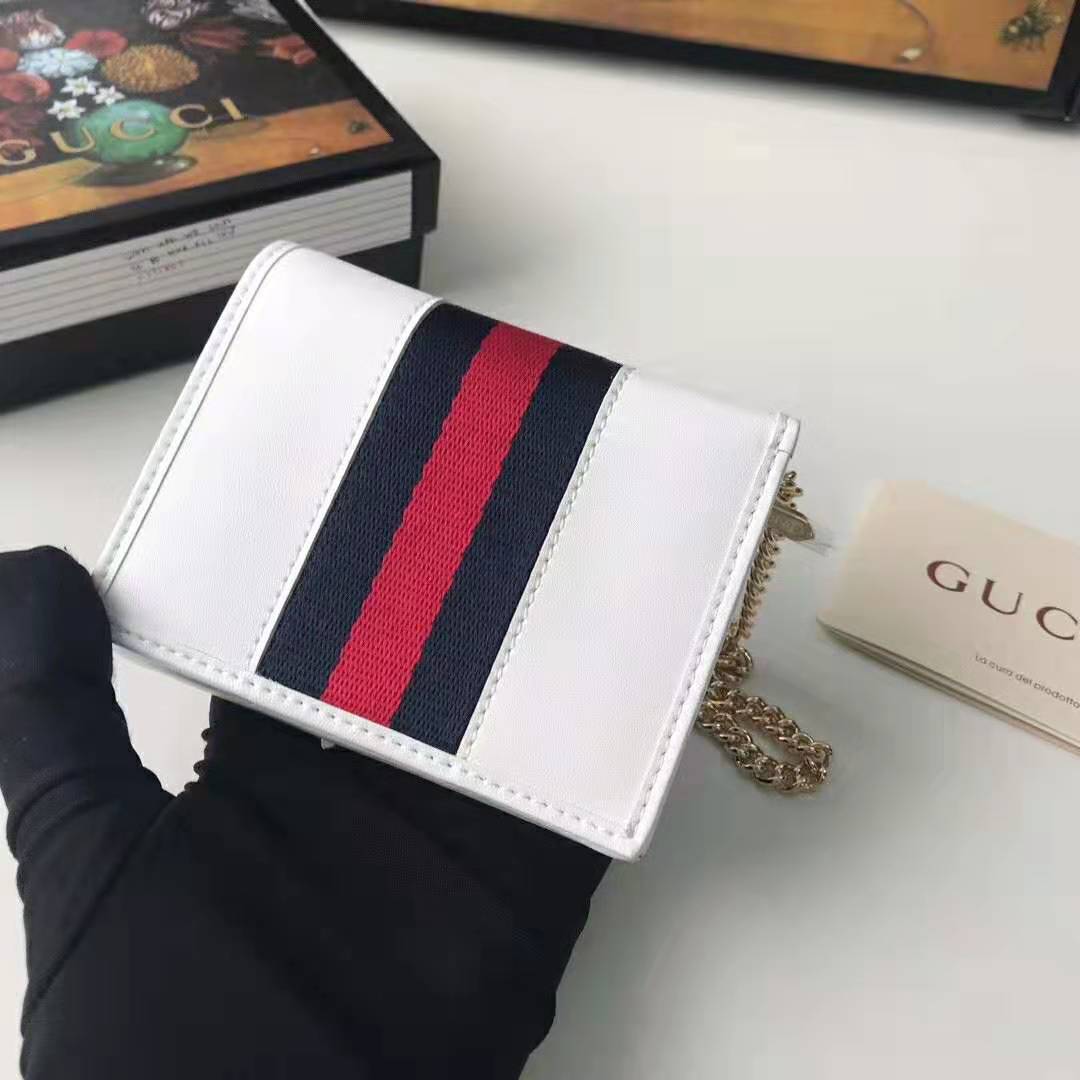 Gucci GG Women Rajah Chain Card Case Wallet Bag in Leather White