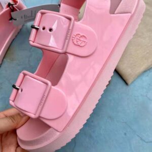 Here, this pair of sandals is introduced in a delicate pink hue which is complemented by a studded version of the House’s monogram hardware in the same color.