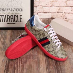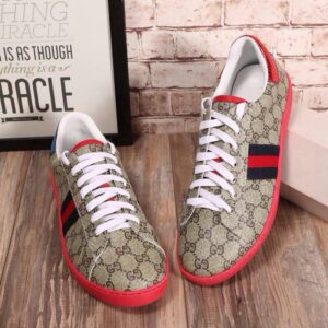 GG Supreme canvas, a material with low-environmental impact, with red leather trim
