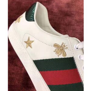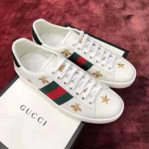 Our classic low-top sneaker with gold thread-embroidered bees and stars, two of Alessandro Michele’s signature details.