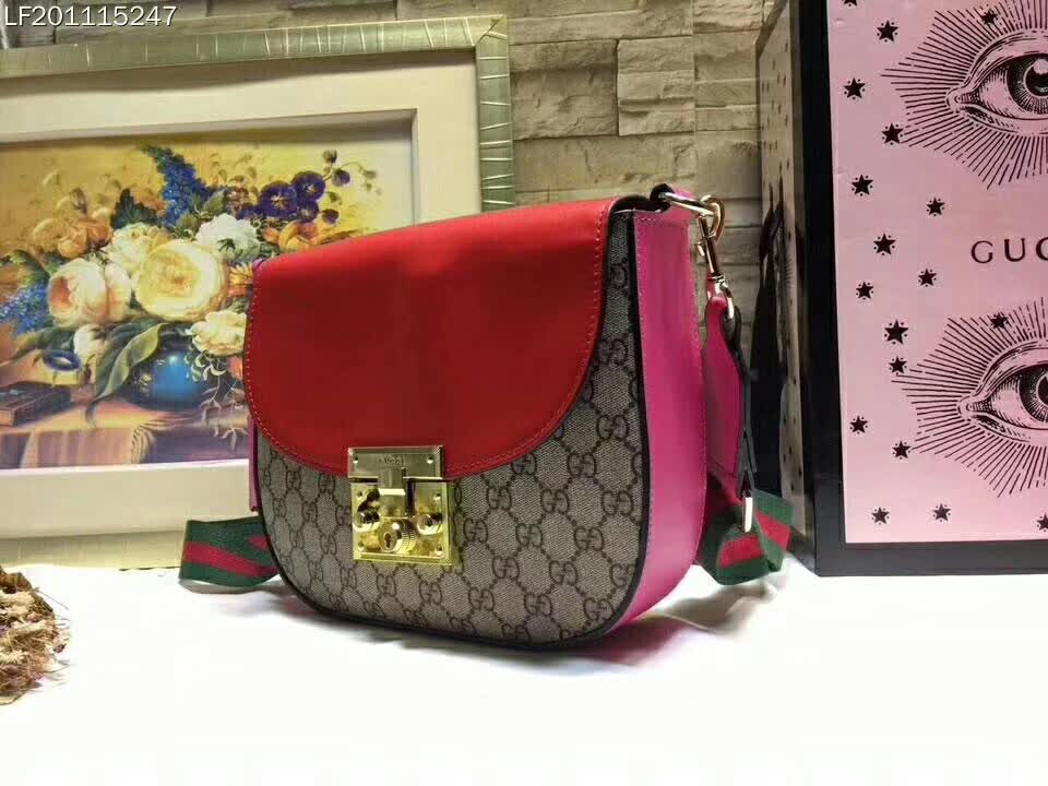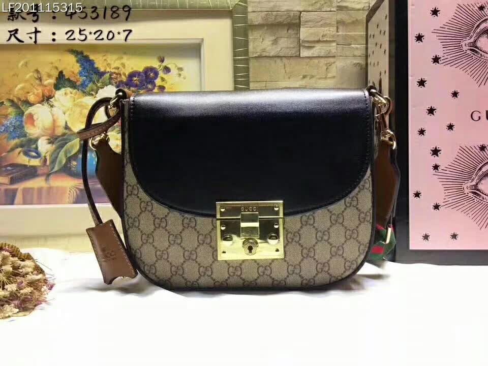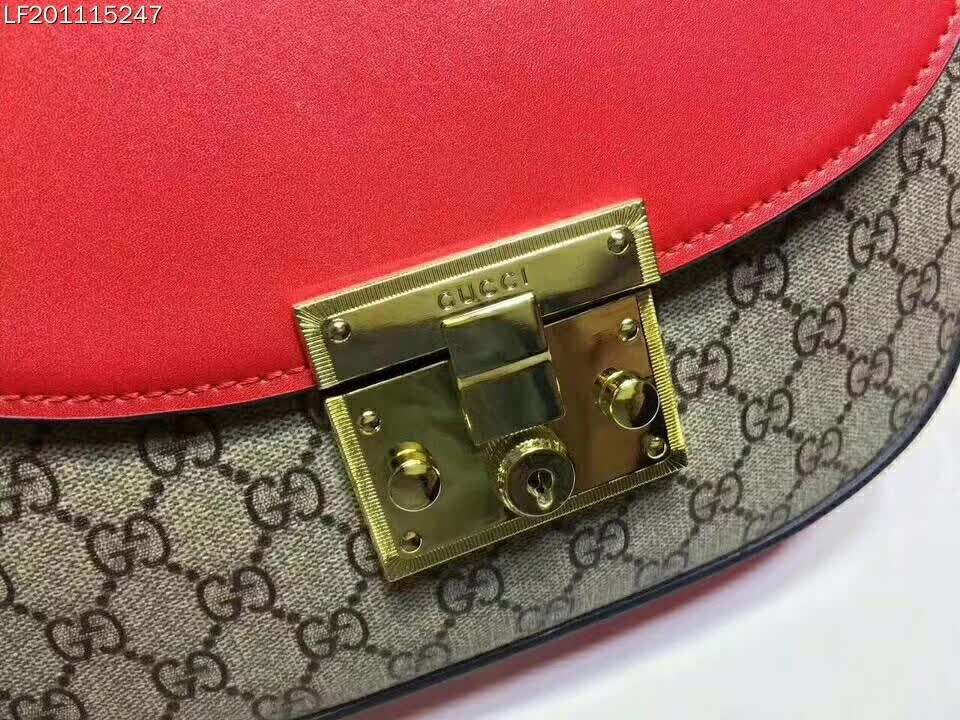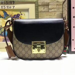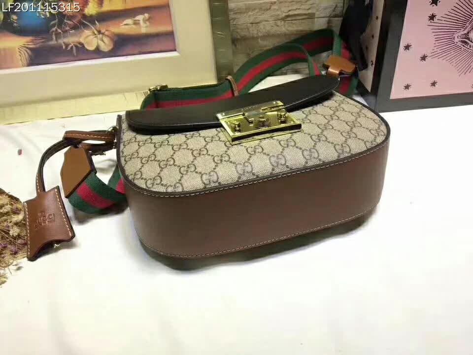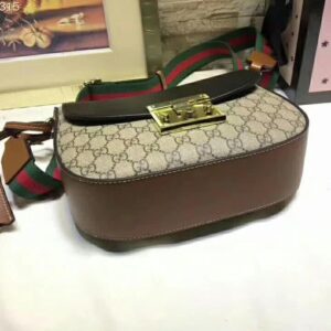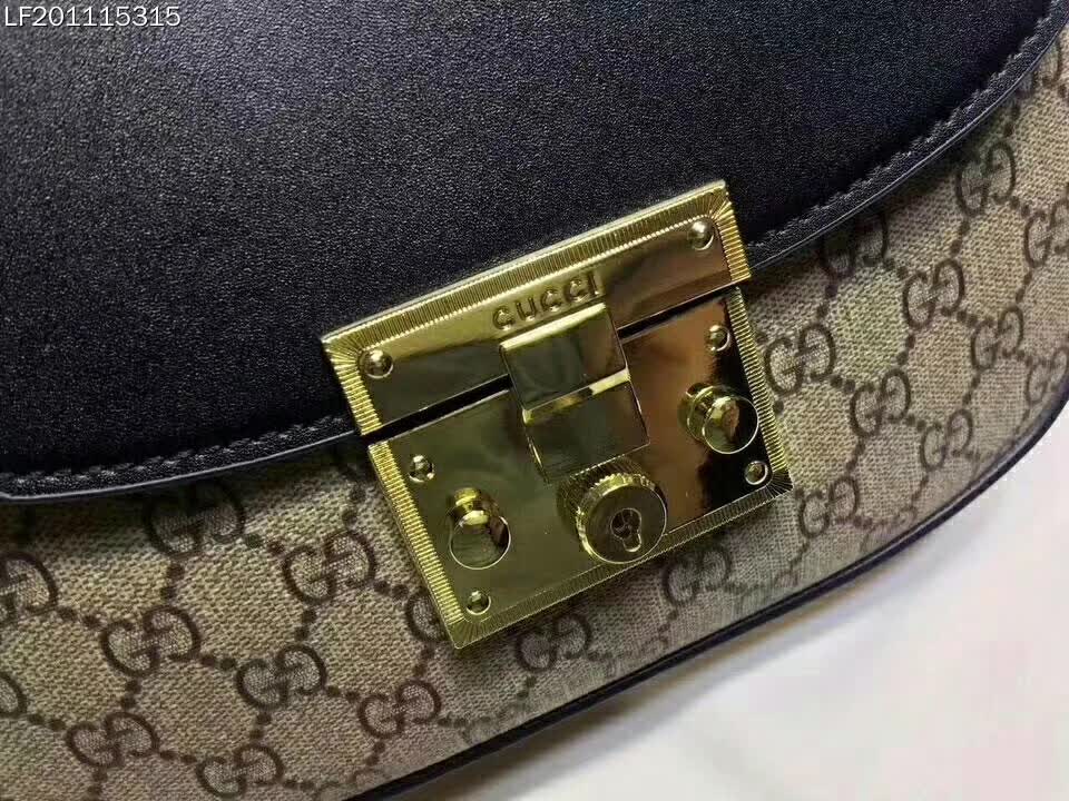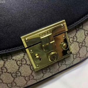 Beige/ebony GG Supreme canvas bag with a leather top and our key lock closure.