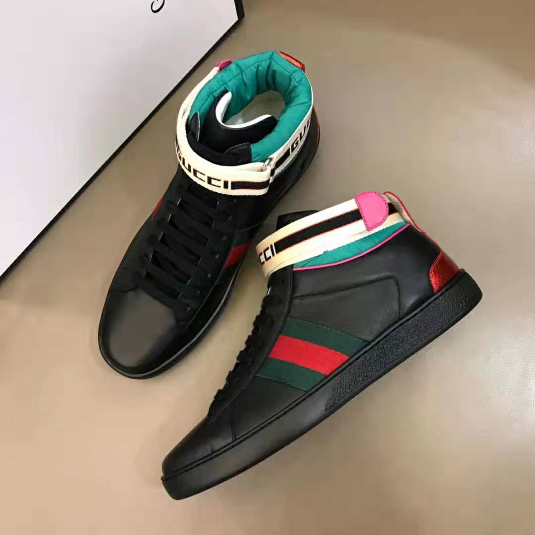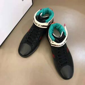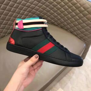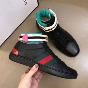 Gucci Unisex Ace Gucci Stripe High-Top Sneaker in 5.1 cm Height-Black