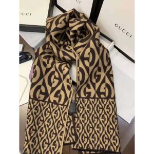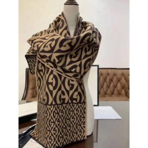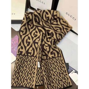 Encased in a geometric design, the G logo forms a graphic pattern, animating this jacquard scarf. Seen throughout the Fall Winter 2019 ready-to-wear and accessories, the motif modernizes the archival rhombi pattern from the ’30s, giving it a bold logo connotation.