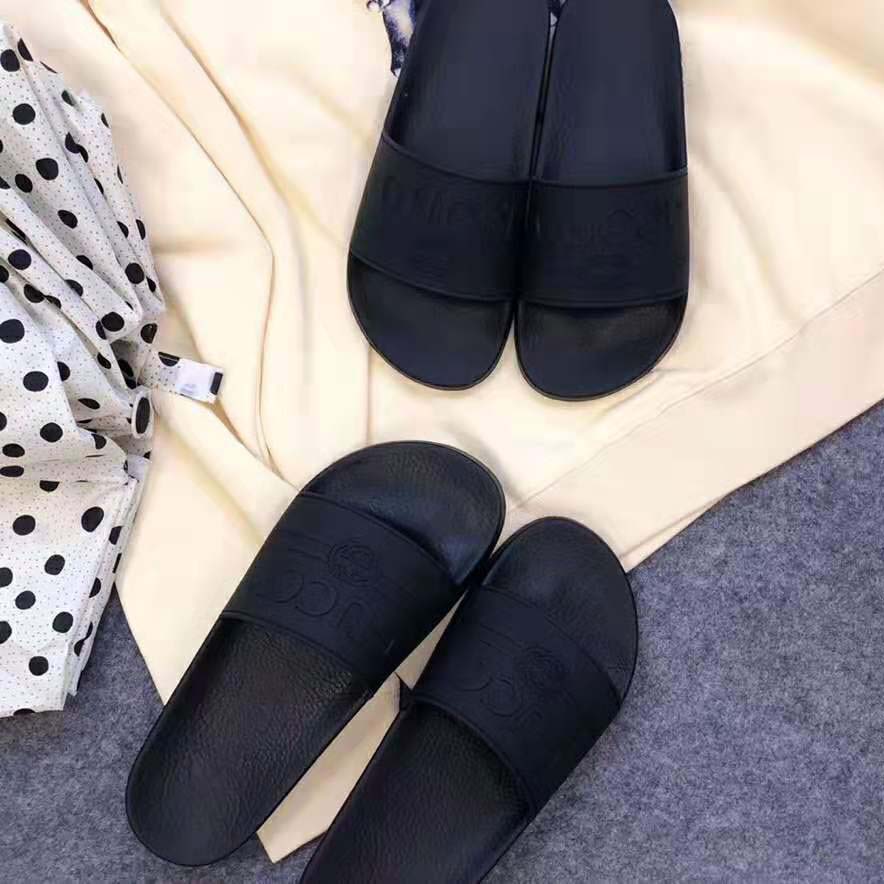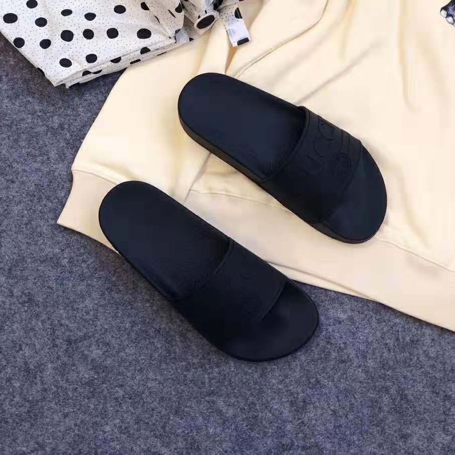 Imbued with the summer feel permeating the Pre-Fall 2018 collection, the Gucci vintage logo – originally inspired by retro prints from the ’80s – is reworked in bright-hued rubber and presented on a series of colorful slide sandals.