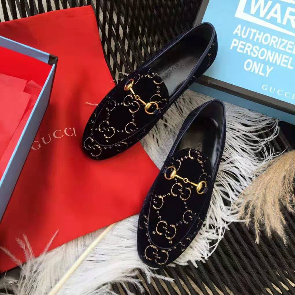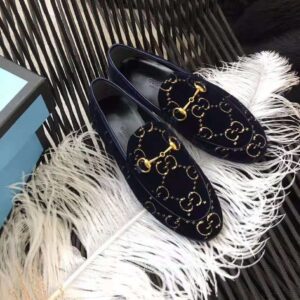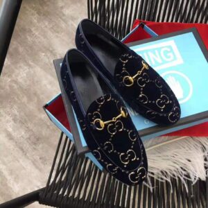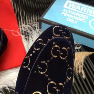 Gucci Unisex Jordaan GG Velvet Loafer-Navy