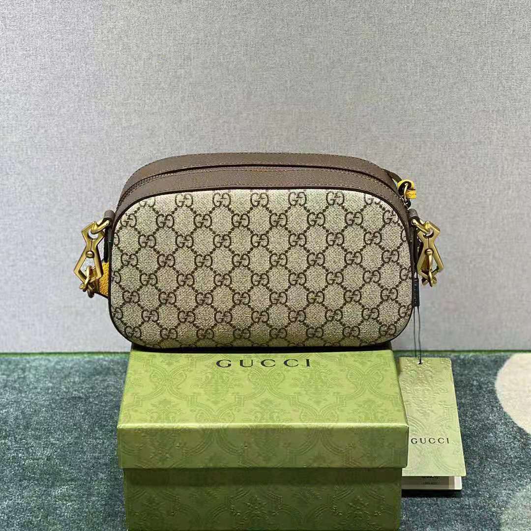 Made in GG Supreme canvas, this camera bag has yellow leather details.