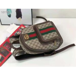 A versatile style that can be used as a travel accessory or a bookbag, the backpack continues to be an important silhouette in the world of Gucci, offered in a variety of sizes and interpretations. Part of the ever-expanding world of Ophidia, it’s crafted in GG Supreme canvas with textured leather trim.