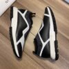 White leather with blue and red Web grosgrain side detail