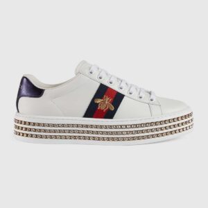 White leather with blue and red Web detail on the sides