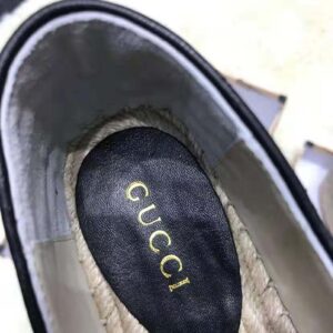 Gucci Women Chevron Leather Espadrille with Double G in 5.1 cm Height-Black