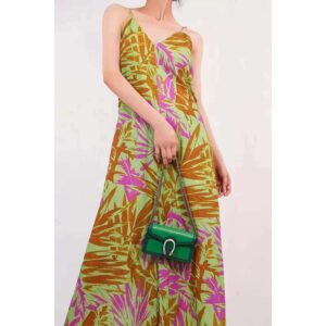Signature styles from the Beloved lines are presented in vibrant colors that recall precious gems. Here the Dionysus is introduced in green leather with a gold-toned take on its emblematic tiger head closure.