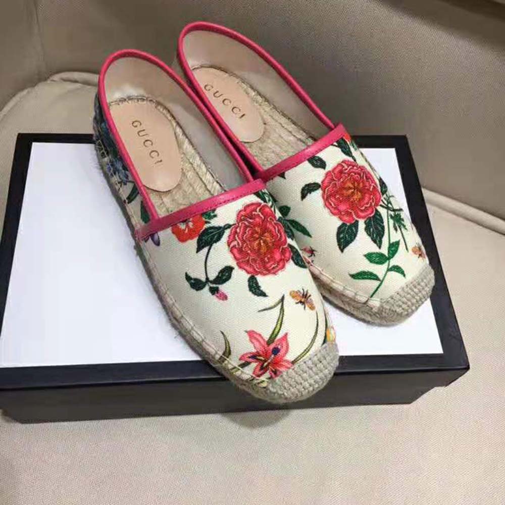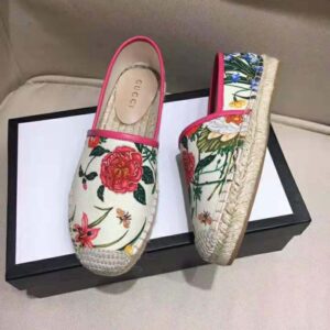 Gucci Women Flora Print Canvas Espadrille-Pink