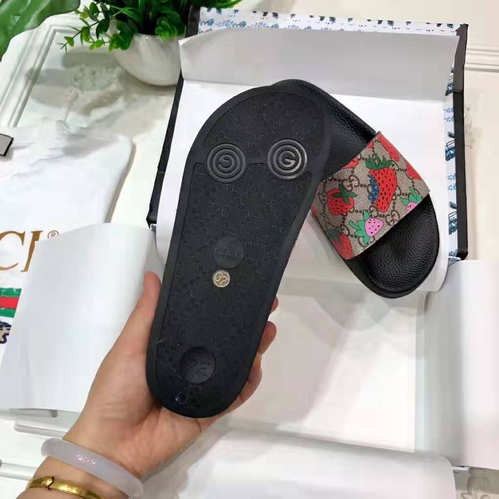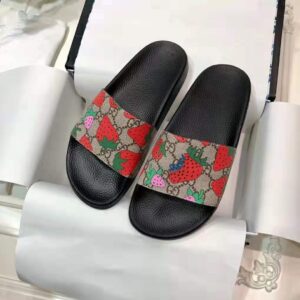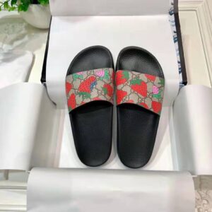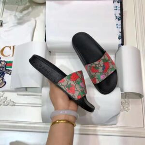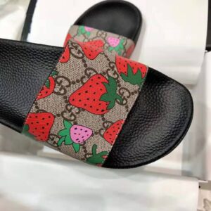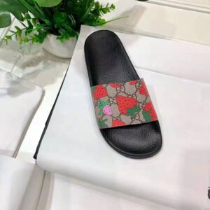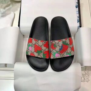 Made in GG Supreme canvas with the colorful, graphic Gucci Strawberry print, the slide sandal continues to be a defining style that is updated each season.