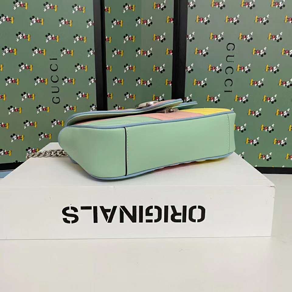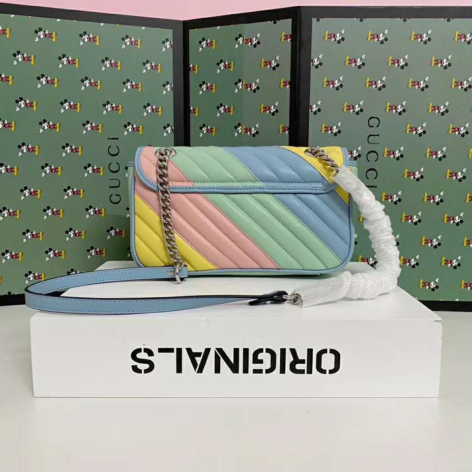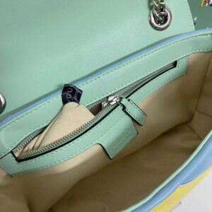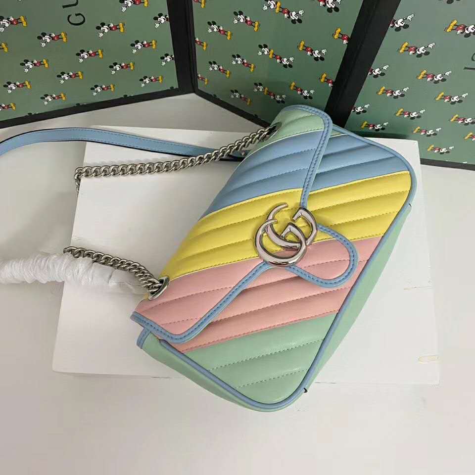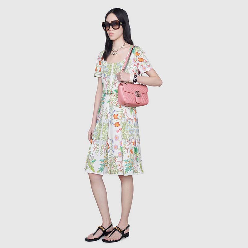 Made in matelassé chevron leather with a heart on the back in a light shade of pink, the now recognizable small GG Marmont chain shoulder bag has a softly structured shape and a flap closure with Double G hardware.