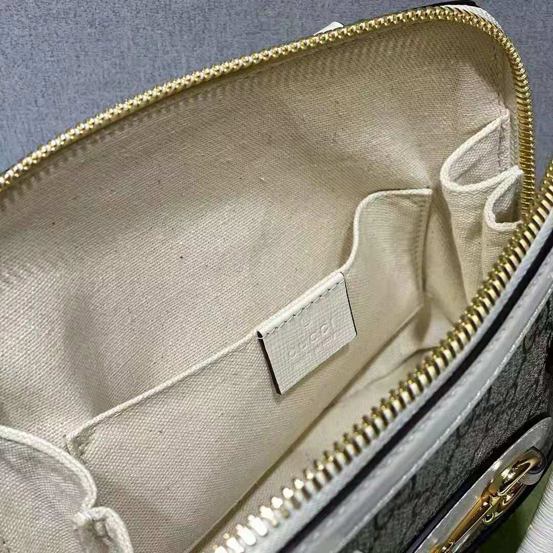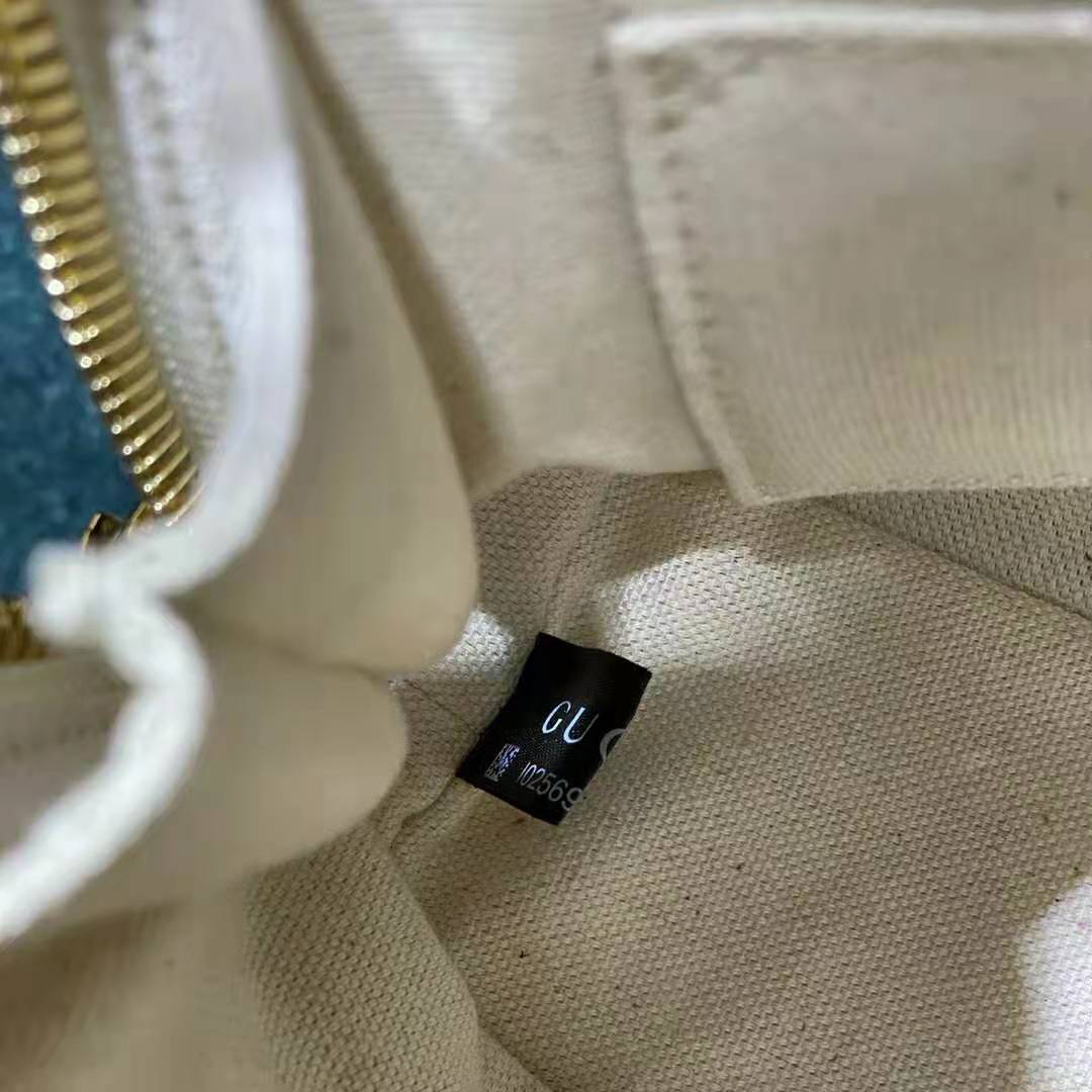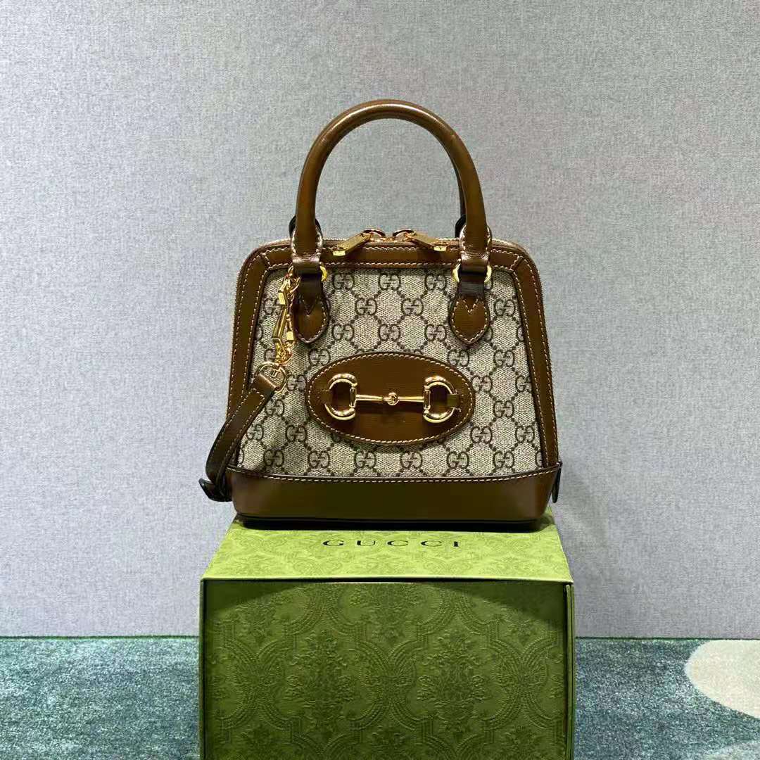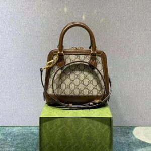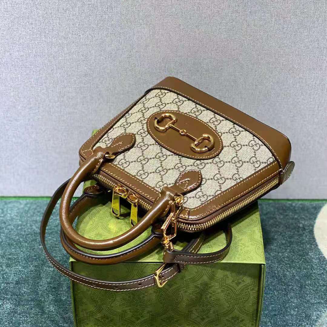 A new introduction to the Gucci Horsebit 1955 line, the mini top handle is crafted from the House’s monogram canvas with contrasting white leather details.