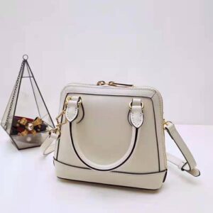 A mini version of the top handle style, presented in white leather, is introduced for the Epilogue collection.