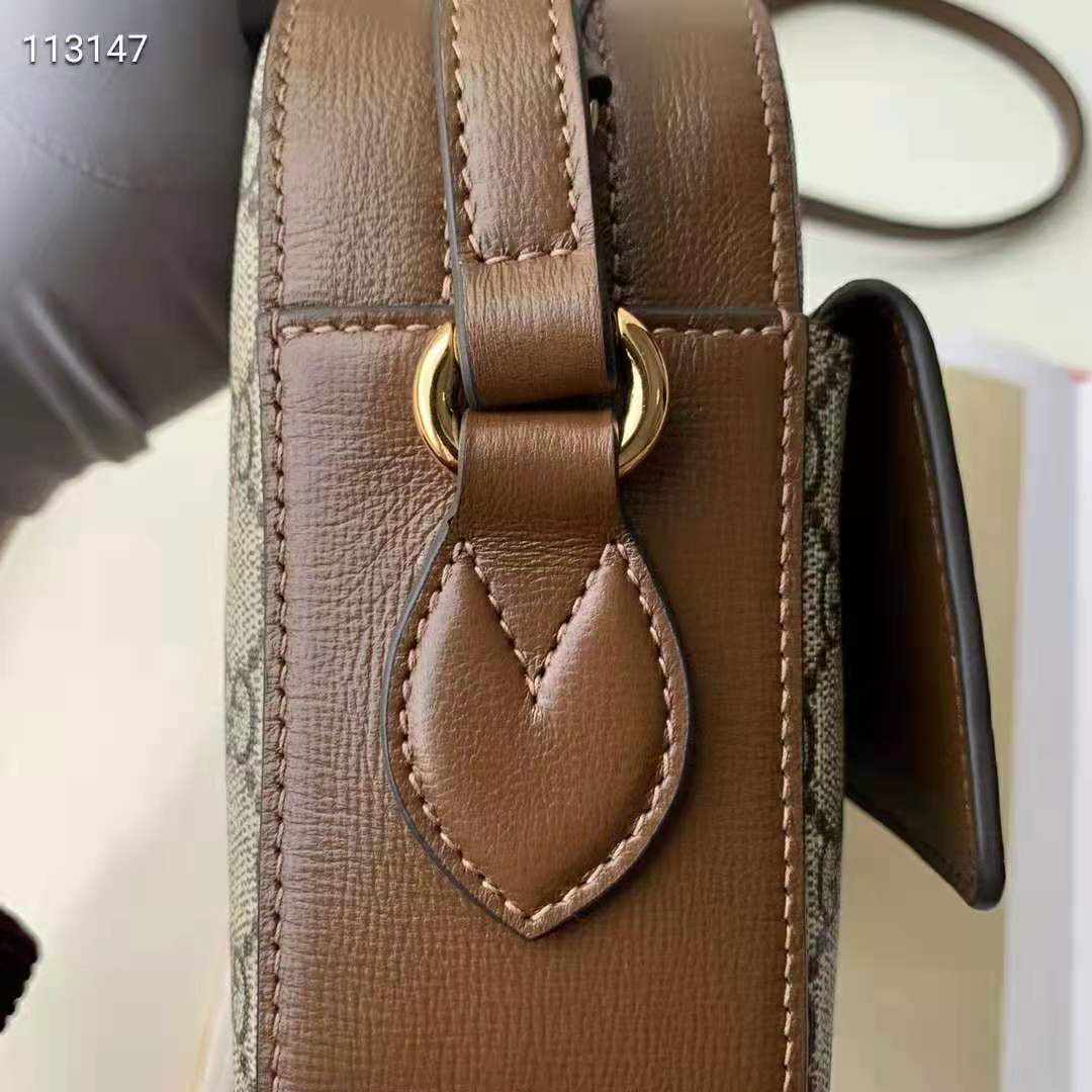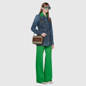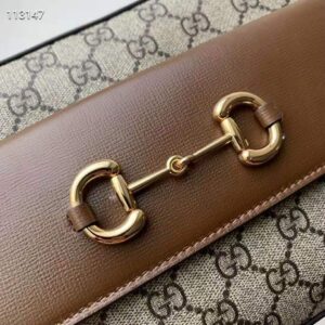 The Epilogue collection’s Gucci Horsebit 1955 unifies this original details first introduced over six decades ago with a modern spirit in a small beige and ebony GG Supreme shoulder bag completed by a special mechanism that adjusts the length of the shoulder strap so it can be carried on one shoulder or cross body.