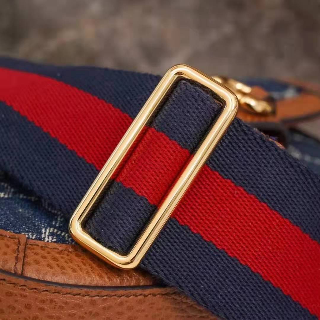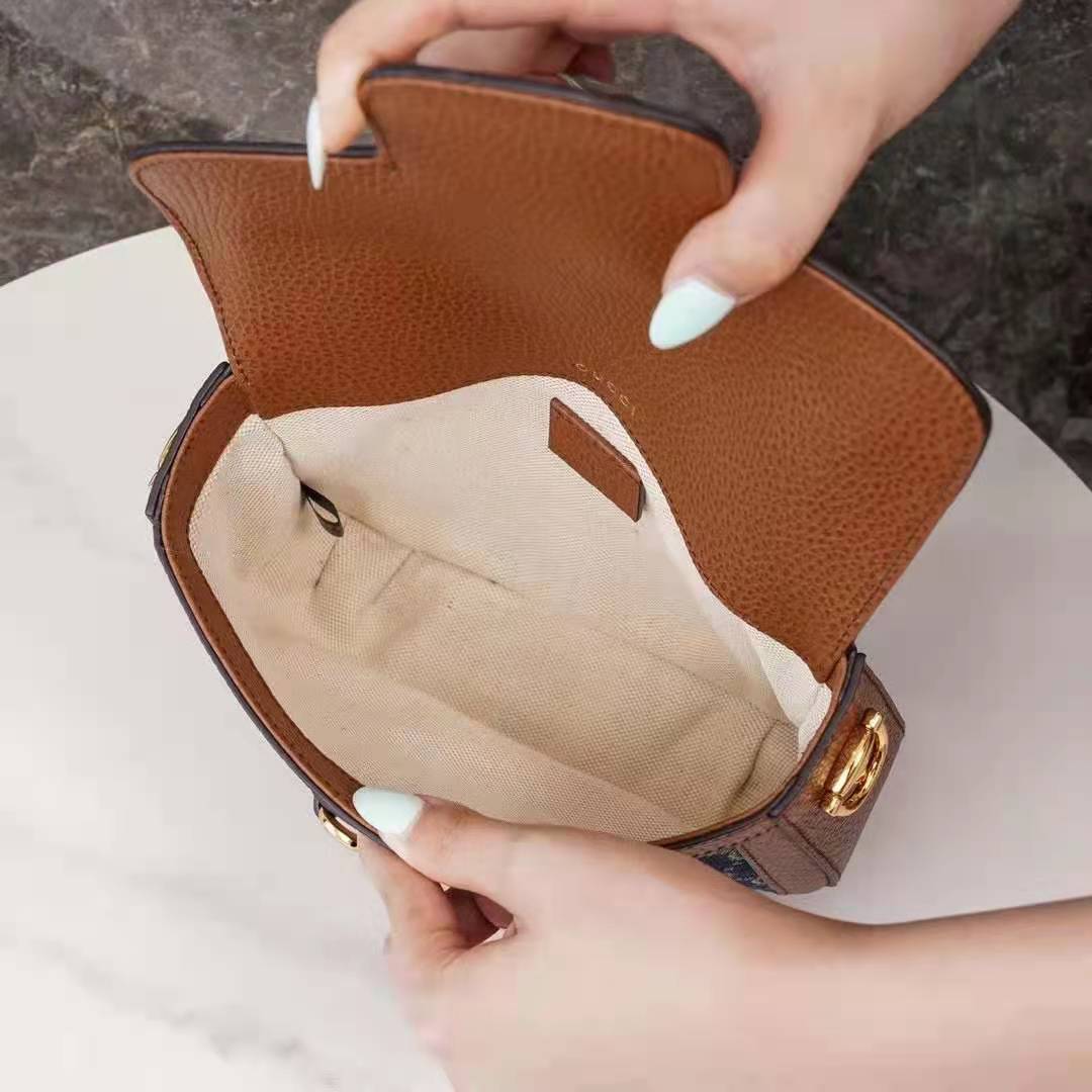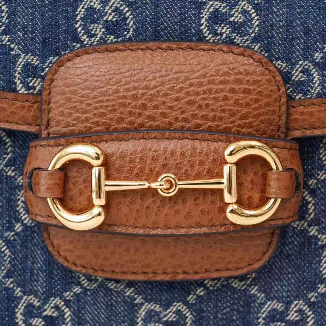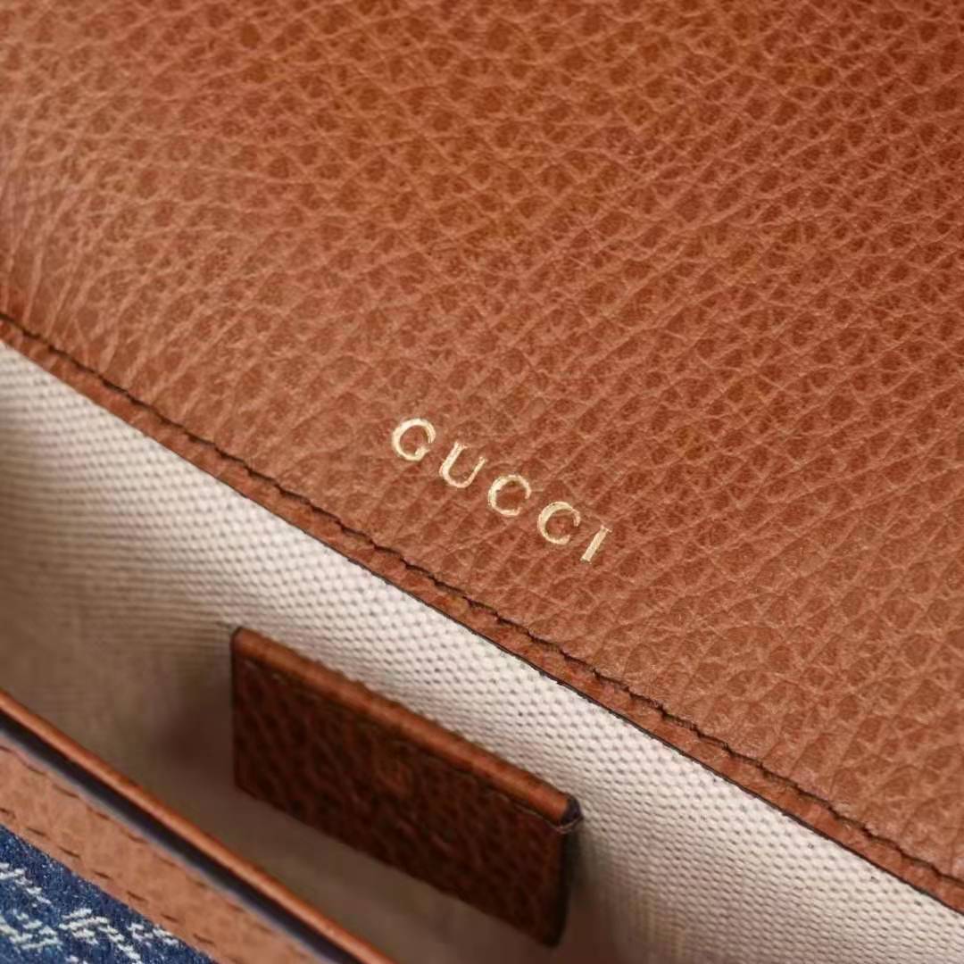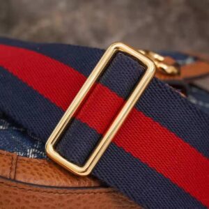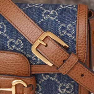 The logo infused fabric is paired with the Gucci Horsebit 1955’s recognizable Horsebit hardware. The mini style is completed by a detachable Web shoulder strap in blue and red, adding a versatile feel to the design.